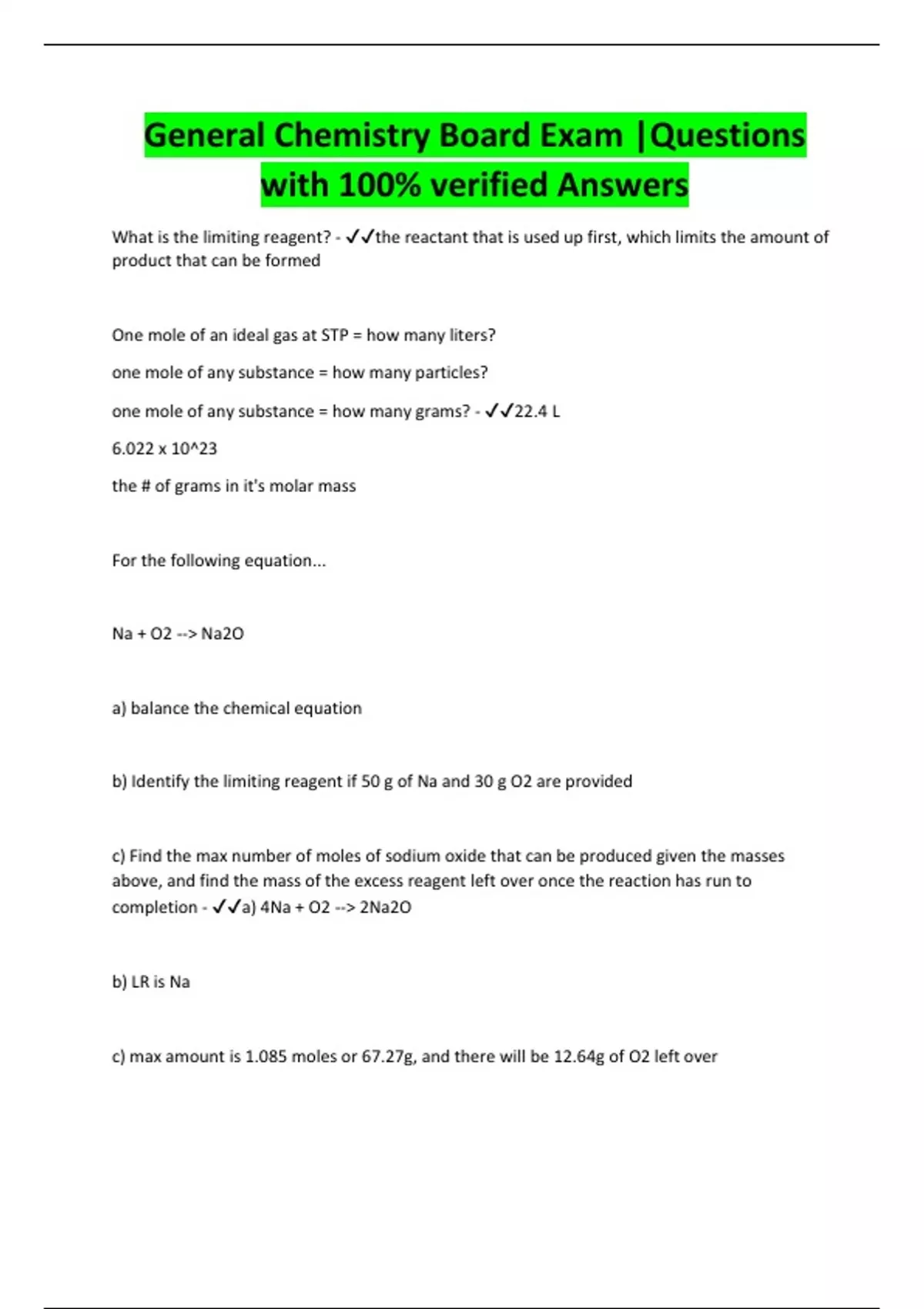 General Chemistry Board Exam |Questions with 100% verified Answers