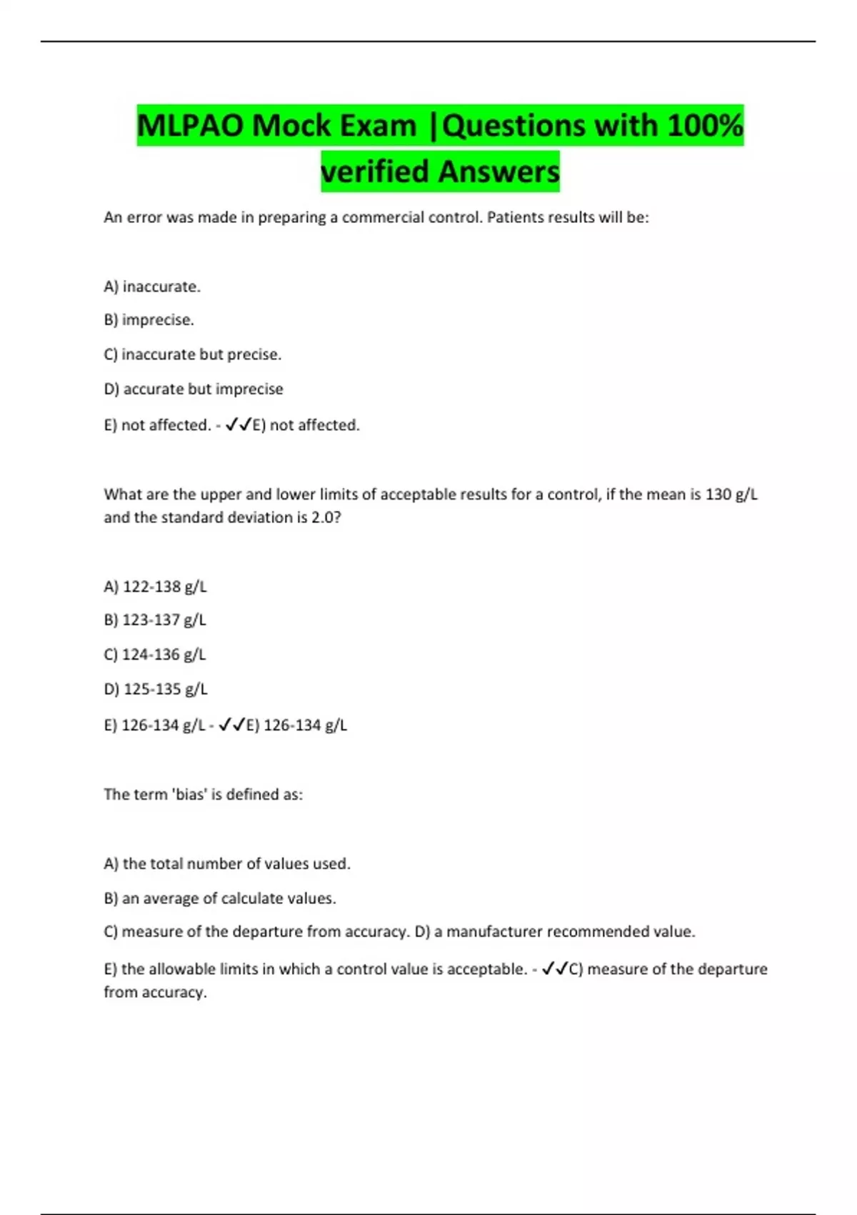 MLPAO Mock Exam |Questions with 100% verified Answers