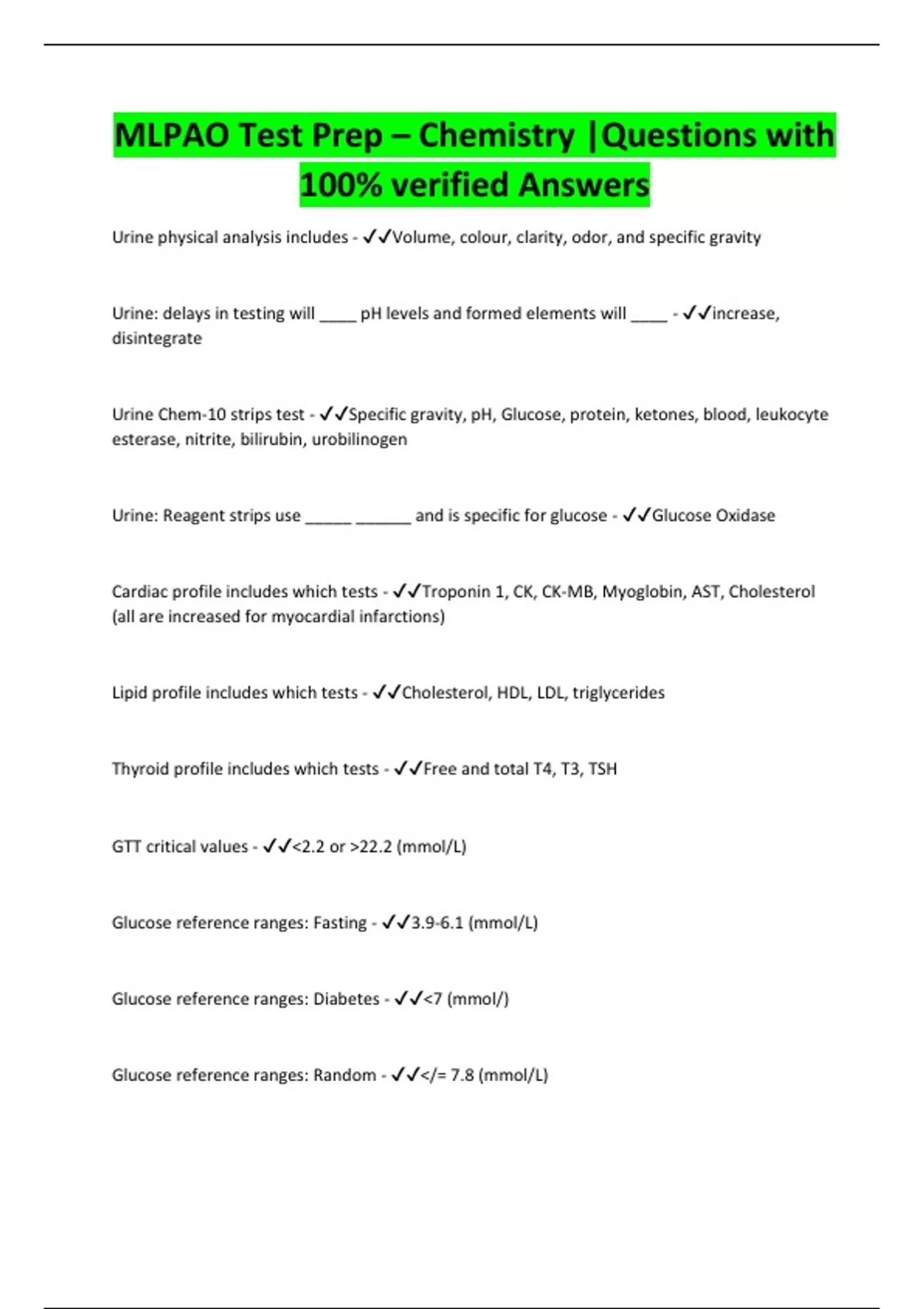 MLPAO Test Prep – Chemistry |Questions with 100% verified Answers