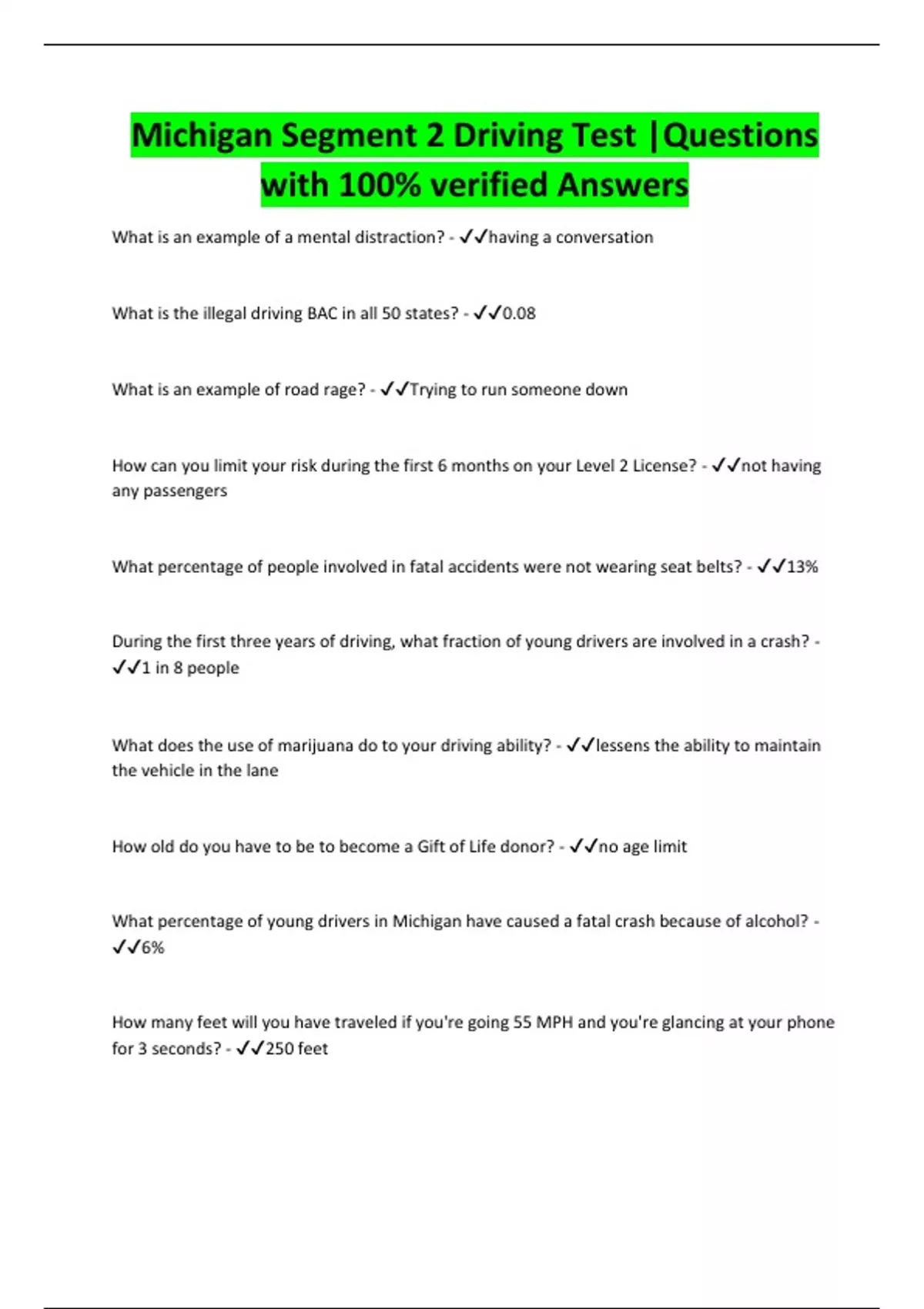 Michigan Segment 2 Driving Test |Questions with 100% verified Answers