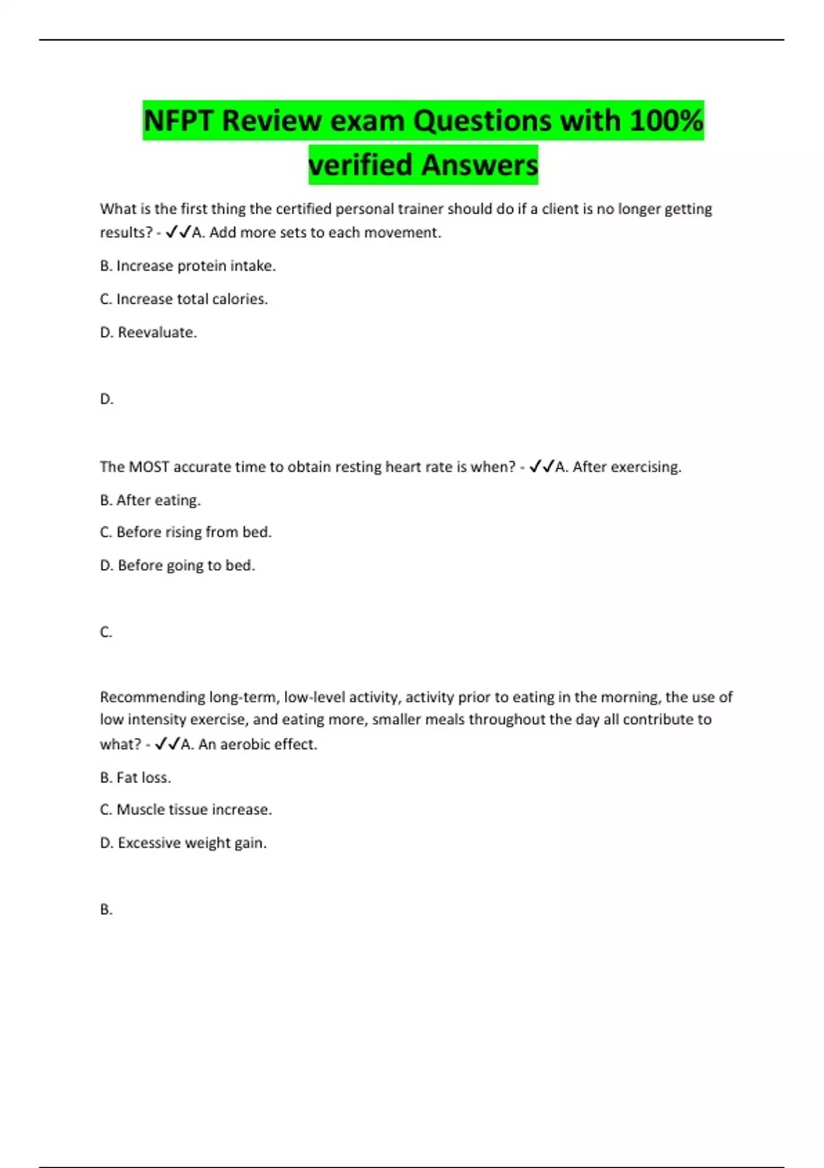 The MOST accurate time to obtain resting heart rate is when? - ✔️✔️A. After exercising.