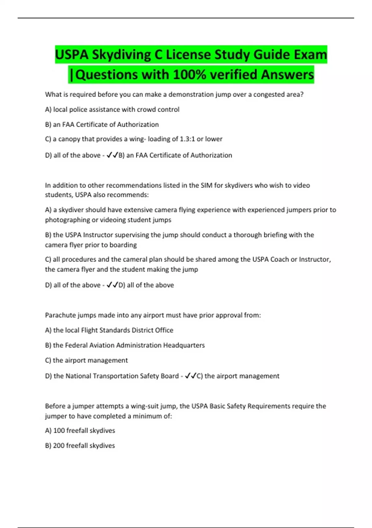 USPA Skydiving B License Study Guide |Questions with 100% verified Answers