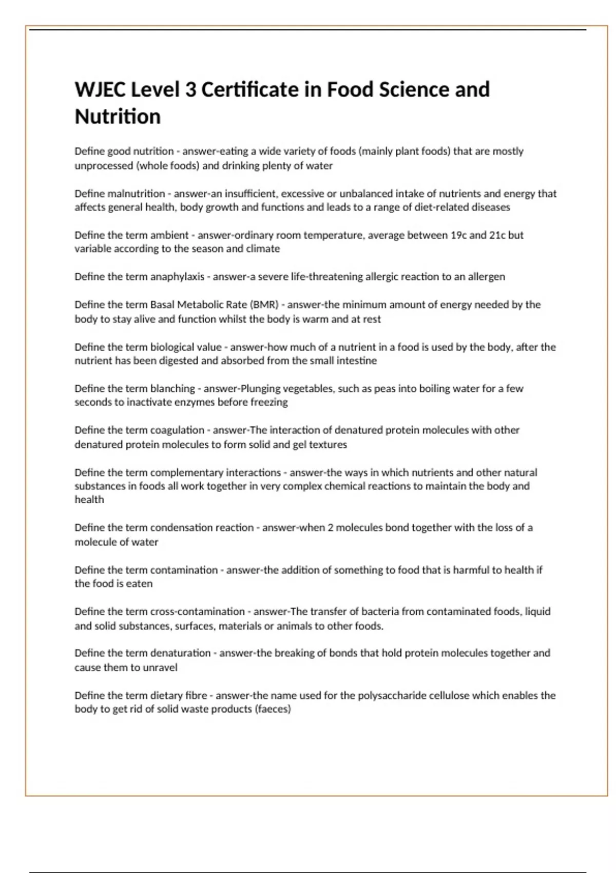 Define the term food poisoning - answer-an unpleasant and potentially severe illness caused by eating
