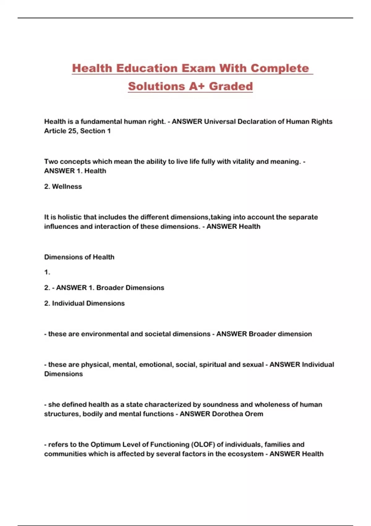 - these are physical, mental, emotional, social, spiritual and sexual - ANSWER Individual