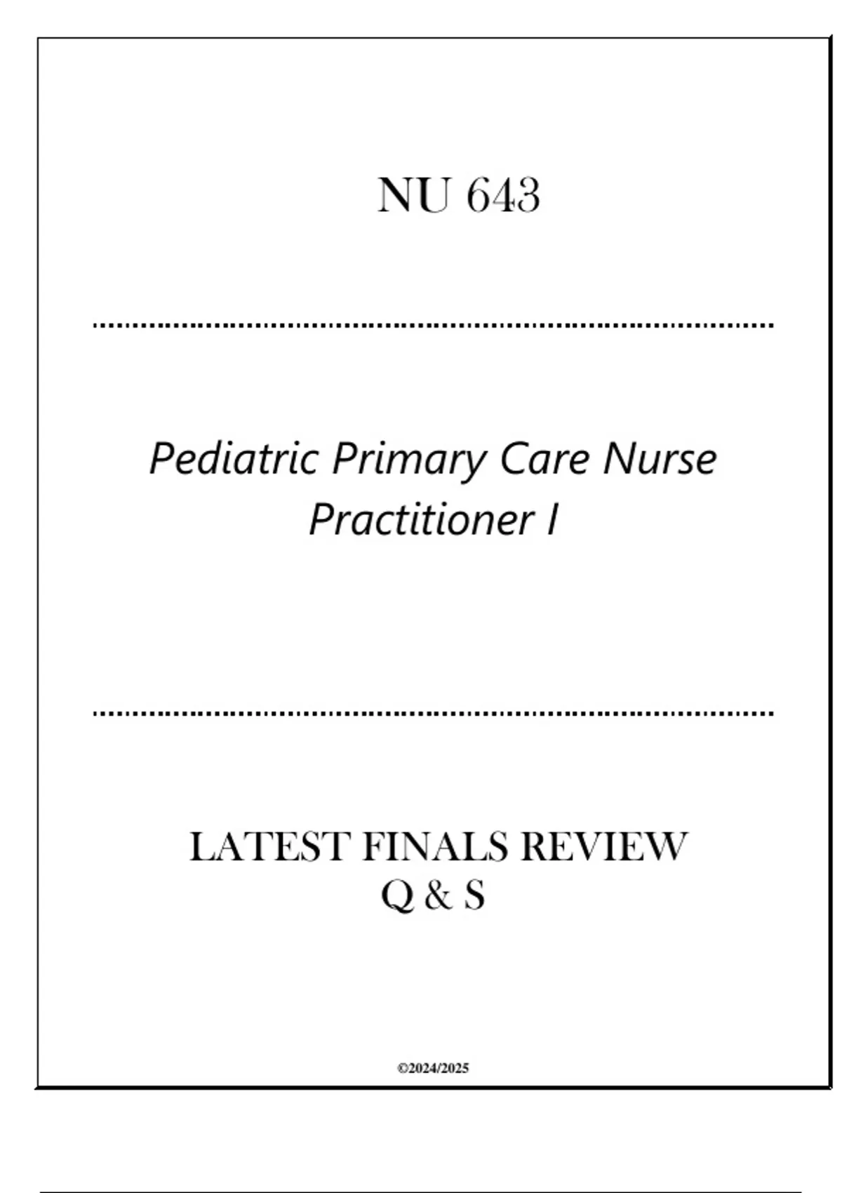 PNP-NU 643 Pediatric Primary Care Nurse Practitioner I - Latest Finals Review Q & S 2024PNP-NU 643 Pediatric Primary Care Nurse Practitioner I - Latest Finals Review Q & S 2024PNP-NU 643 Pediatric Primary Care Nurse Practitioner I - Latest Finals Review Q & S 2024