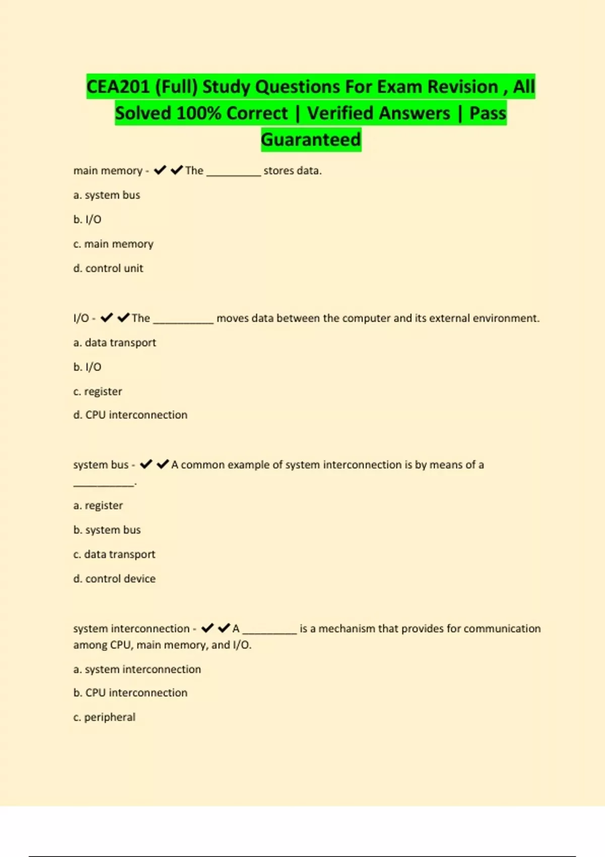 CEA201 (Full) Study Questions For Exam Revision , All