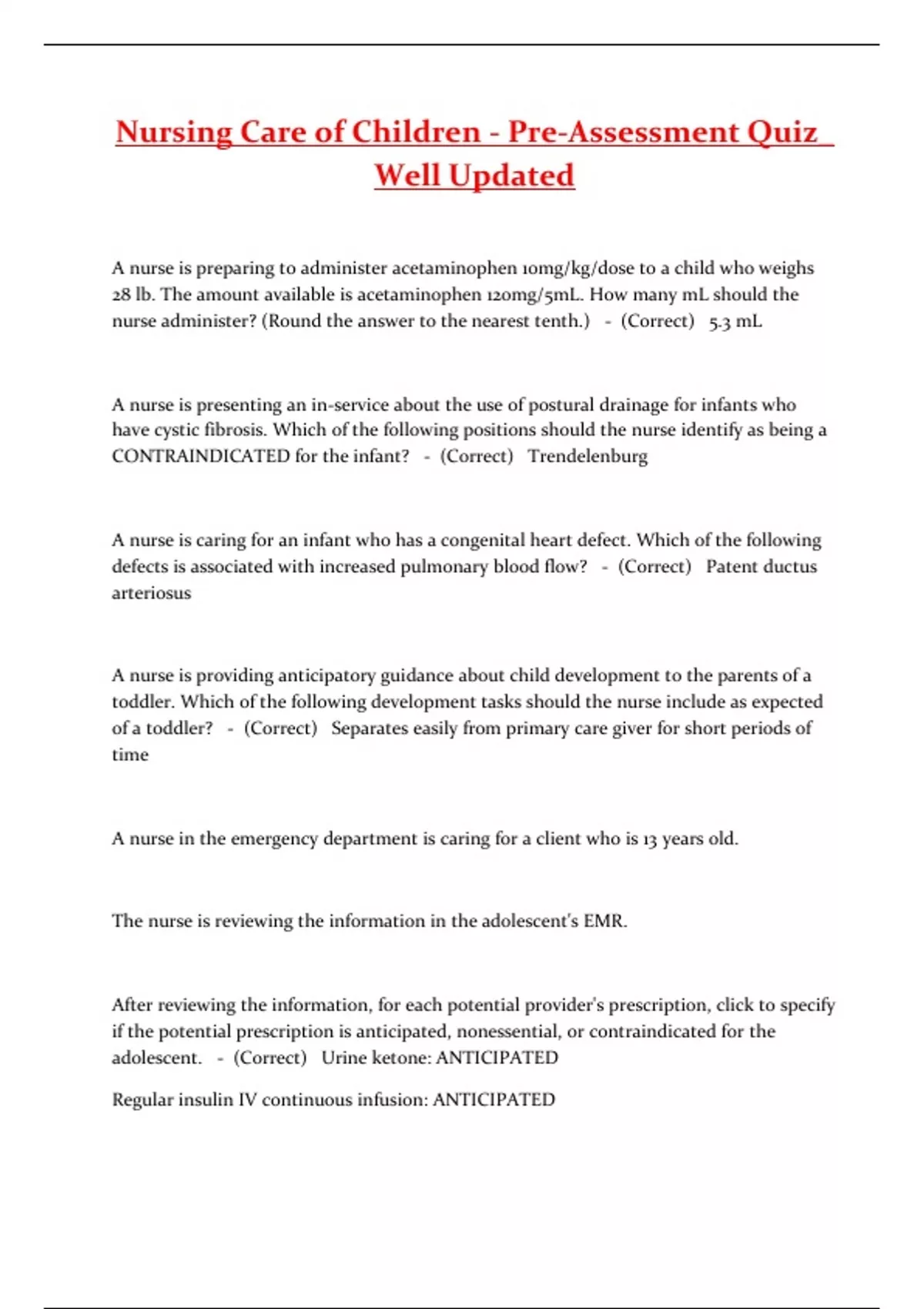 Nursing Care of Children - Pre-Assessment Quiz_ Well Updated