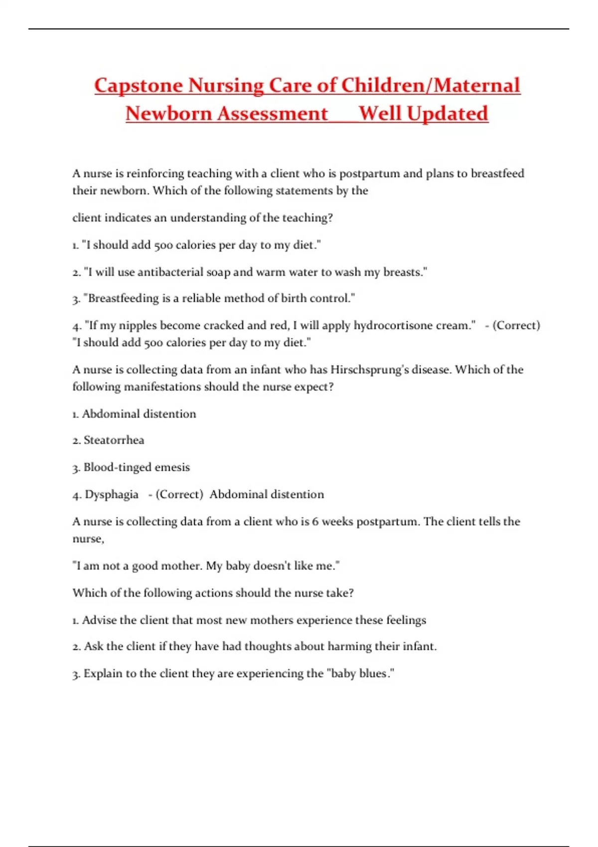 Capstone Nursing Care of Children/Maternal Newborn Assessment___Well Updated