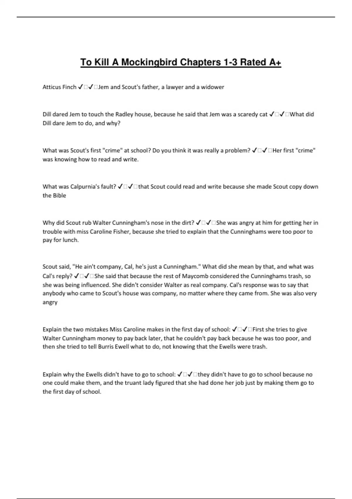 To Kill A Mockingbird Chapters 1-3 Rated A+