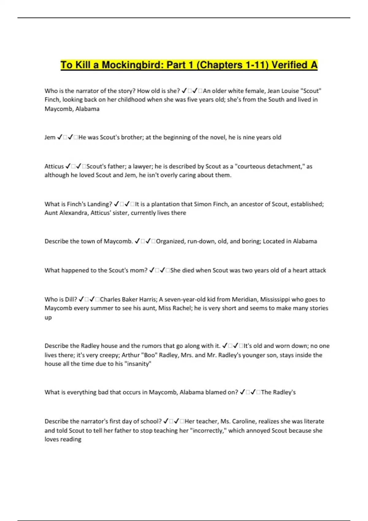 Atticus ✔️✔️Scout's father; a lawyer; he is described by Scout as a "courteous detachment," as