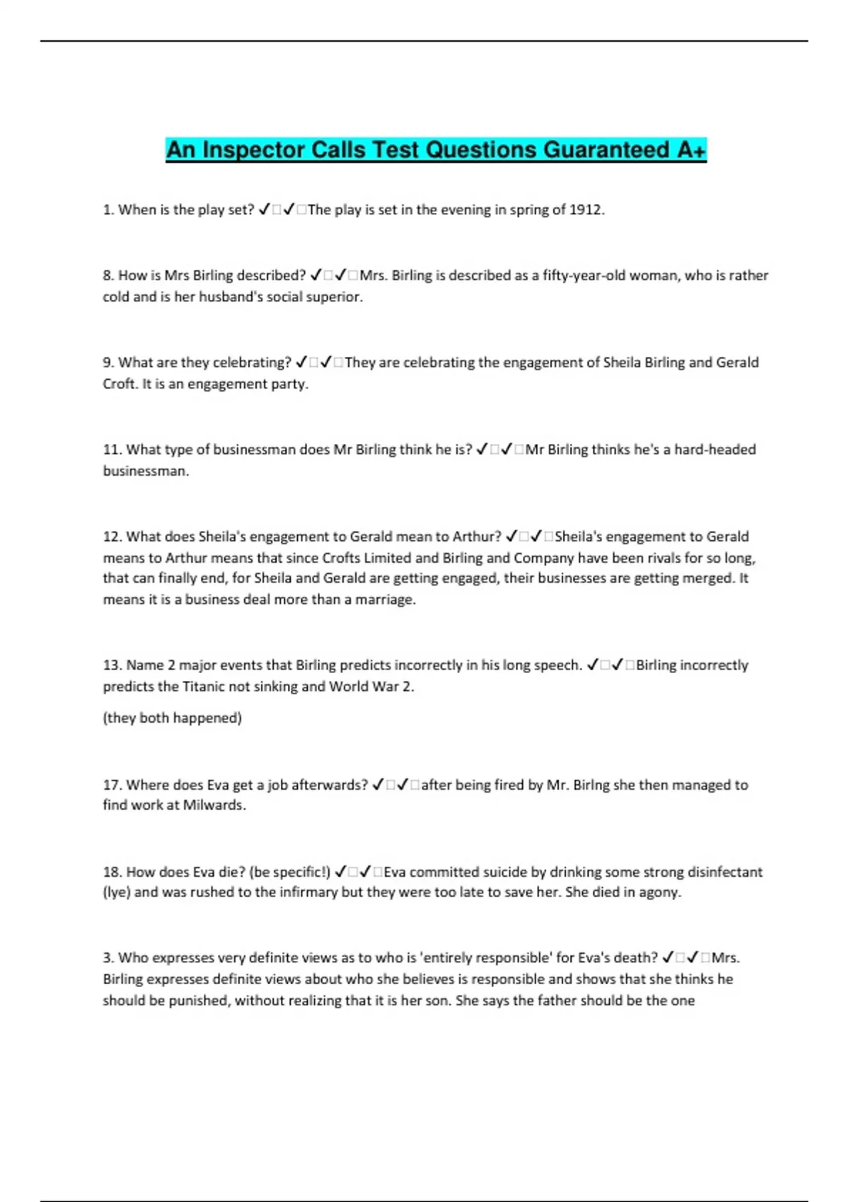 8. How is Mrs Birling described? ✔️✔️Mrs. Birling is described as a fifty-year-old woman, who is rather