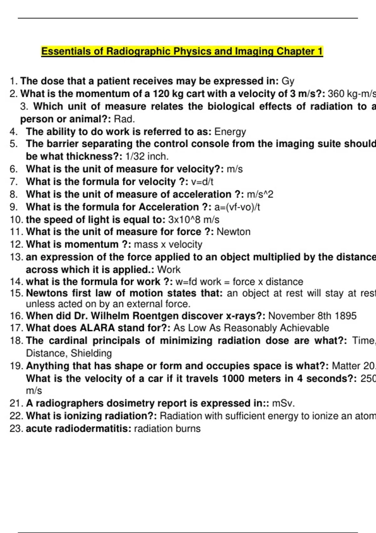 RTE 1401 Essentials of Radiographic Physics & Imaging ch 1 2024