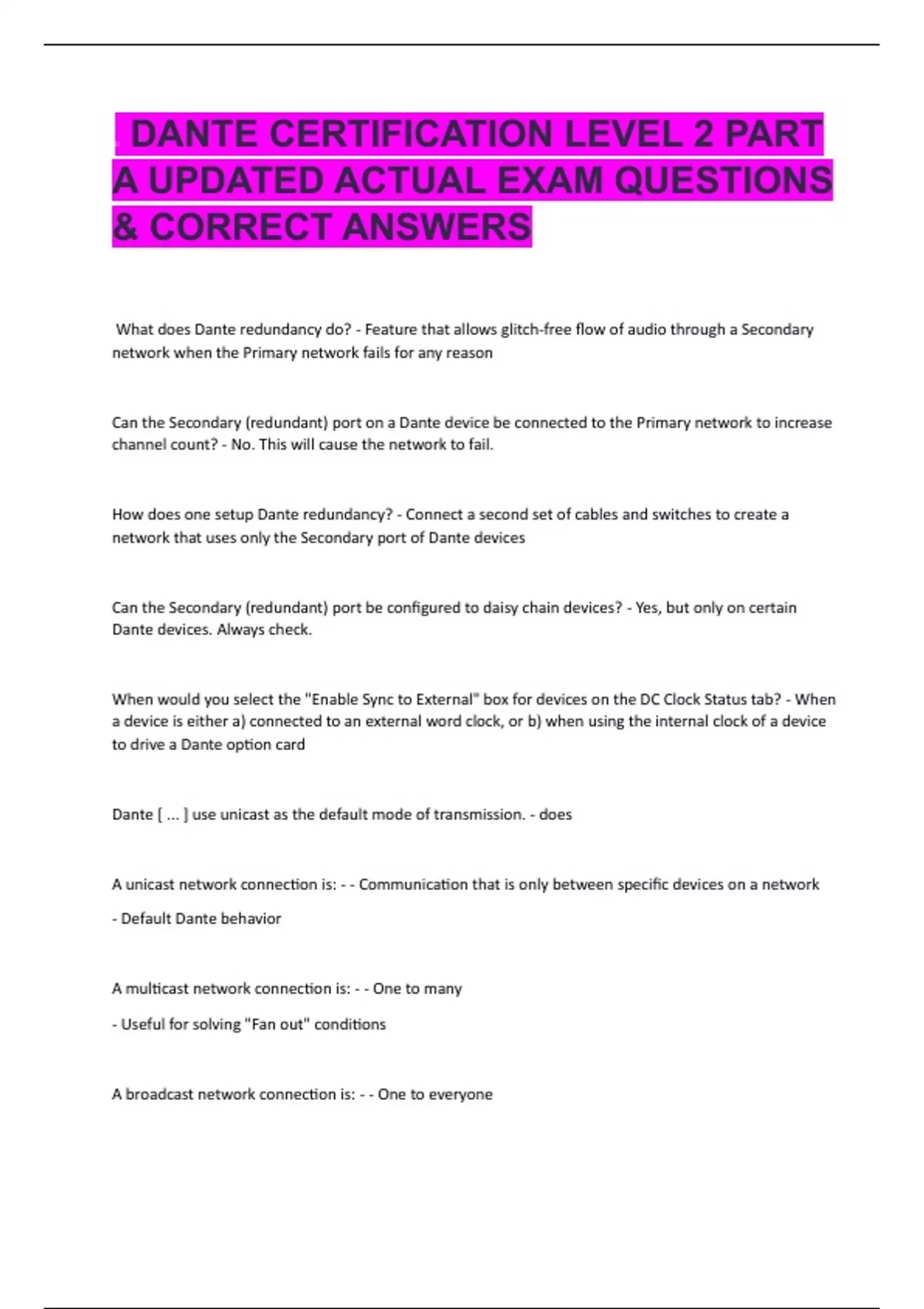 Dante [ ... ] use unicast as the default mode of transmission. - does
