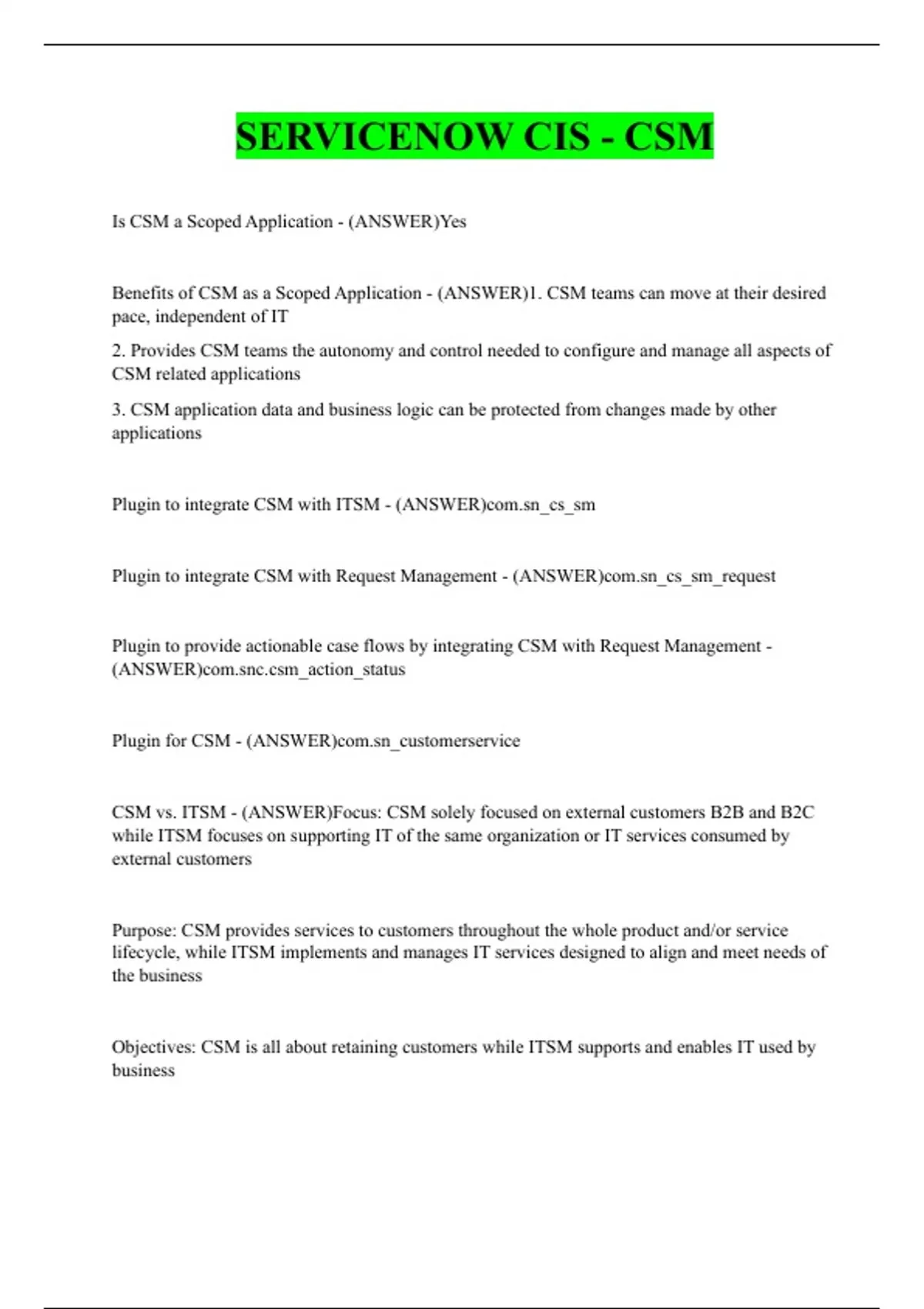 CSM vs. ITSM - (ANSWER)Focus: CSM solely focused on external customers B2B and B2C