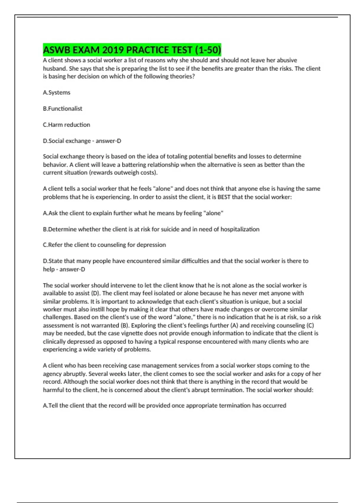 D.Social exchange - answer-D