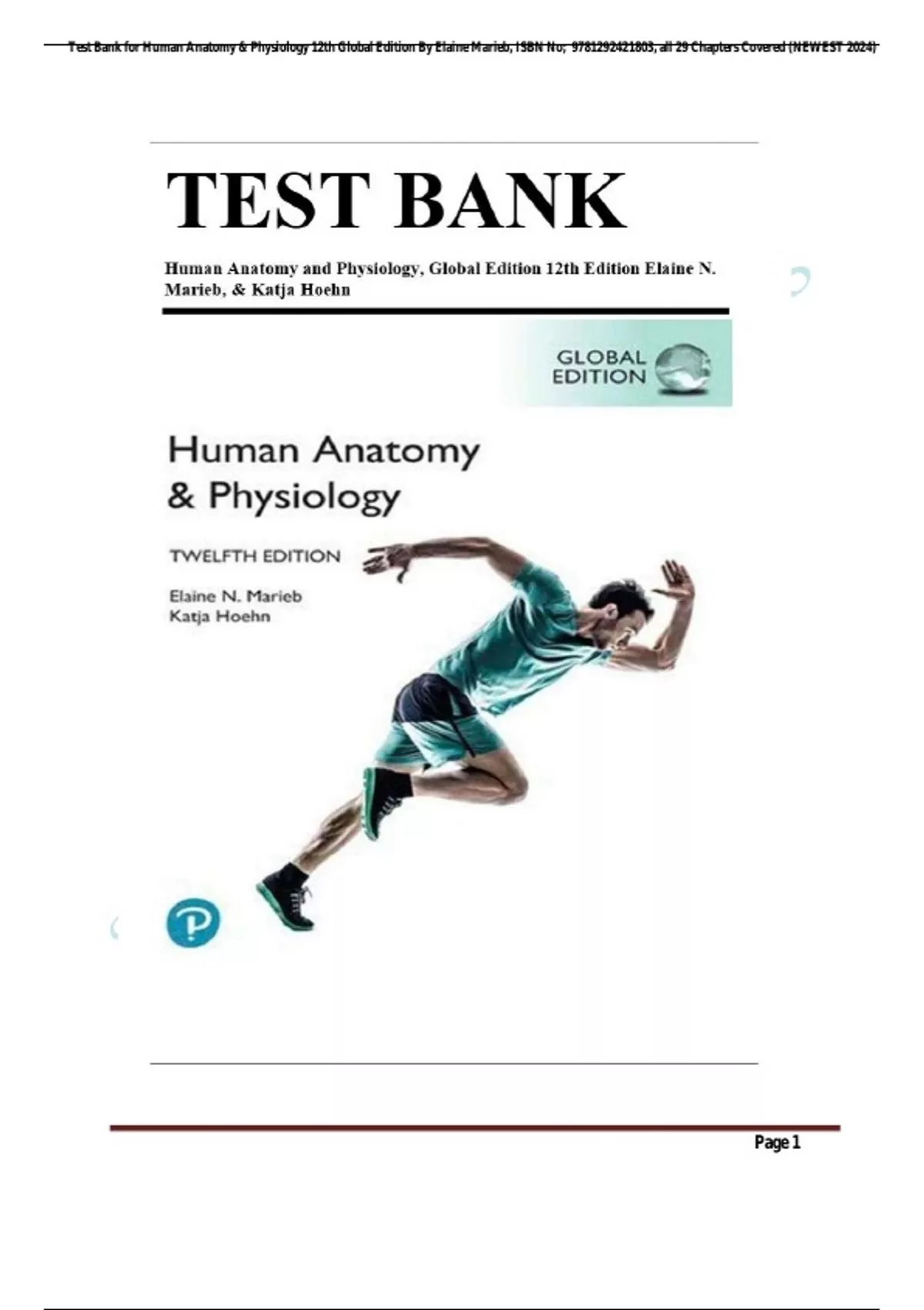 Test Bank for Human Anatomy & Physiology 12th Global Edition By Elaine Marieb, ISBN No; 9781292421803, all 29 Chapters Covered (NEWEST 2024)