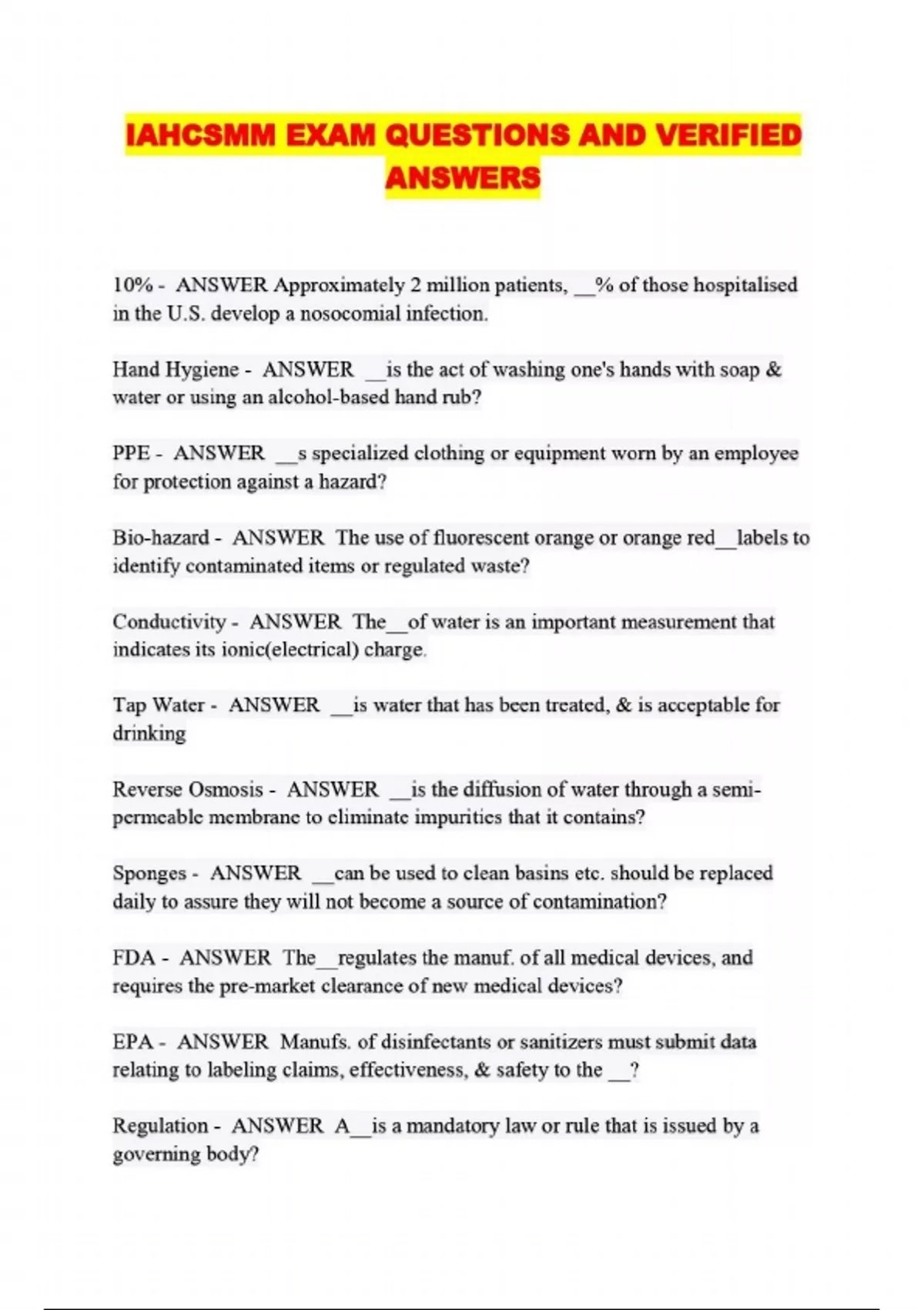 IAHCSMM EXAM QUESTIONS AND VERIFIED ANSWERS...