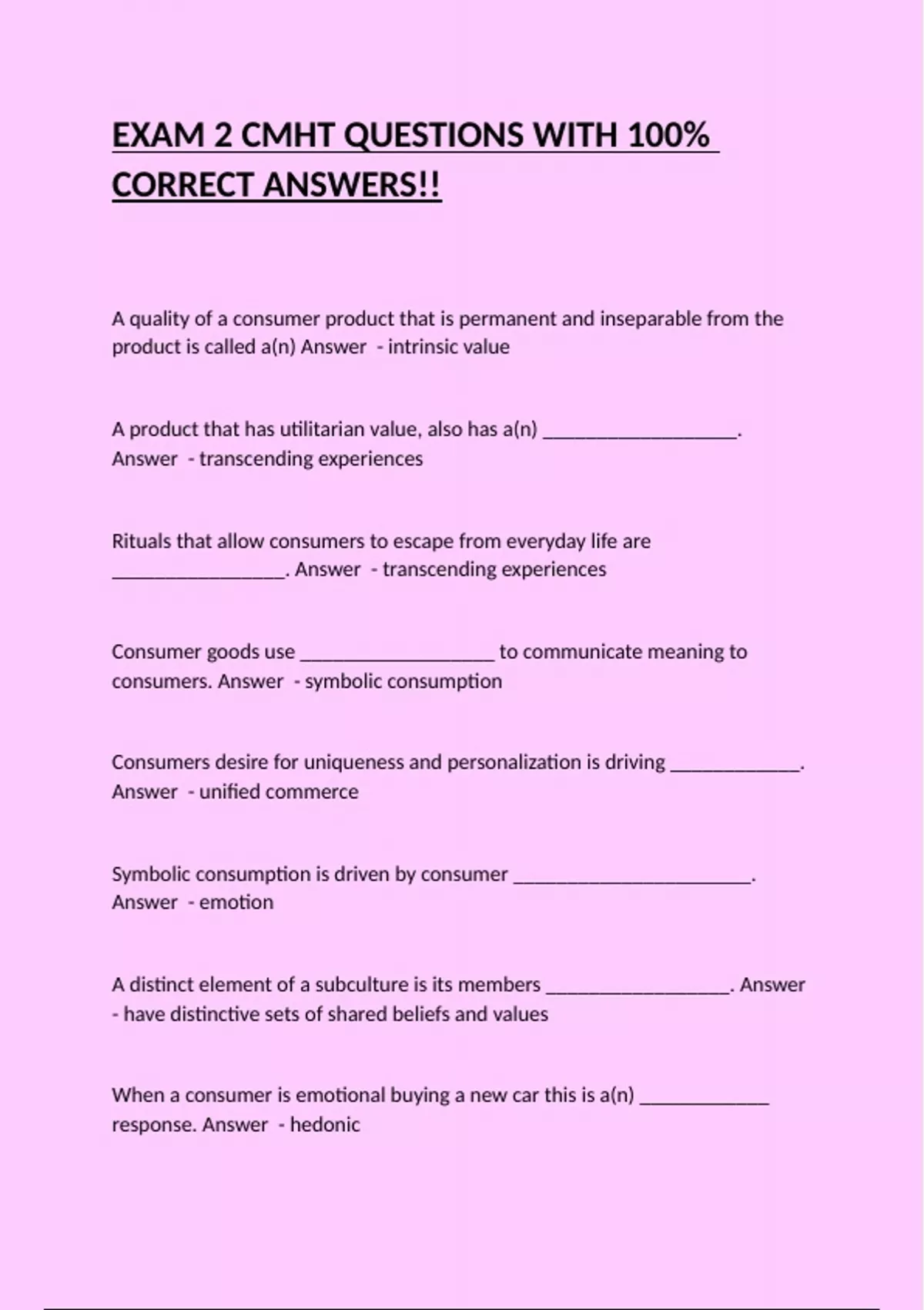 EXAM 2 CMHT QUESTIONS WITH 100%