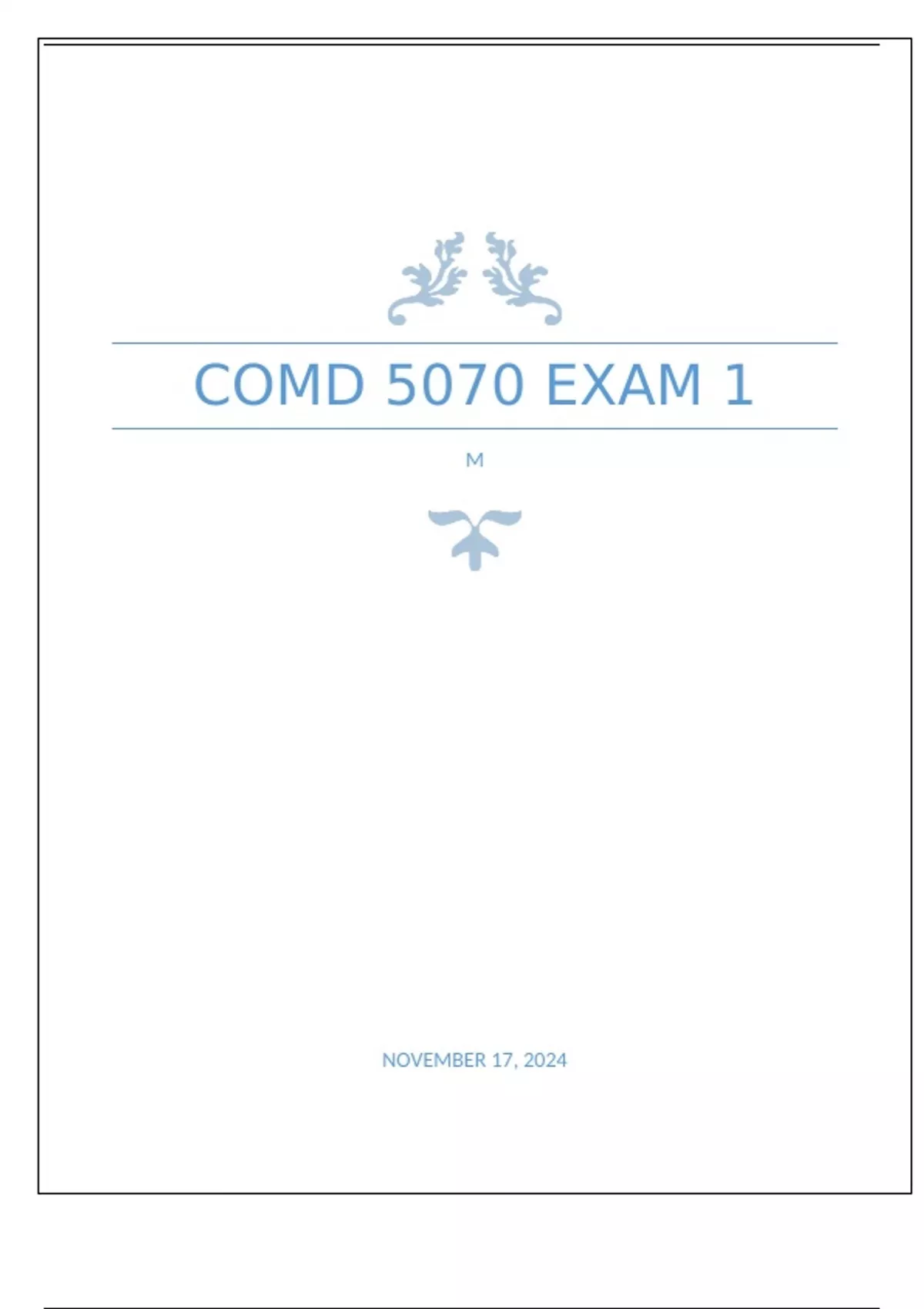 , COMD 5070 EXAM 1 WITH ANSWERS