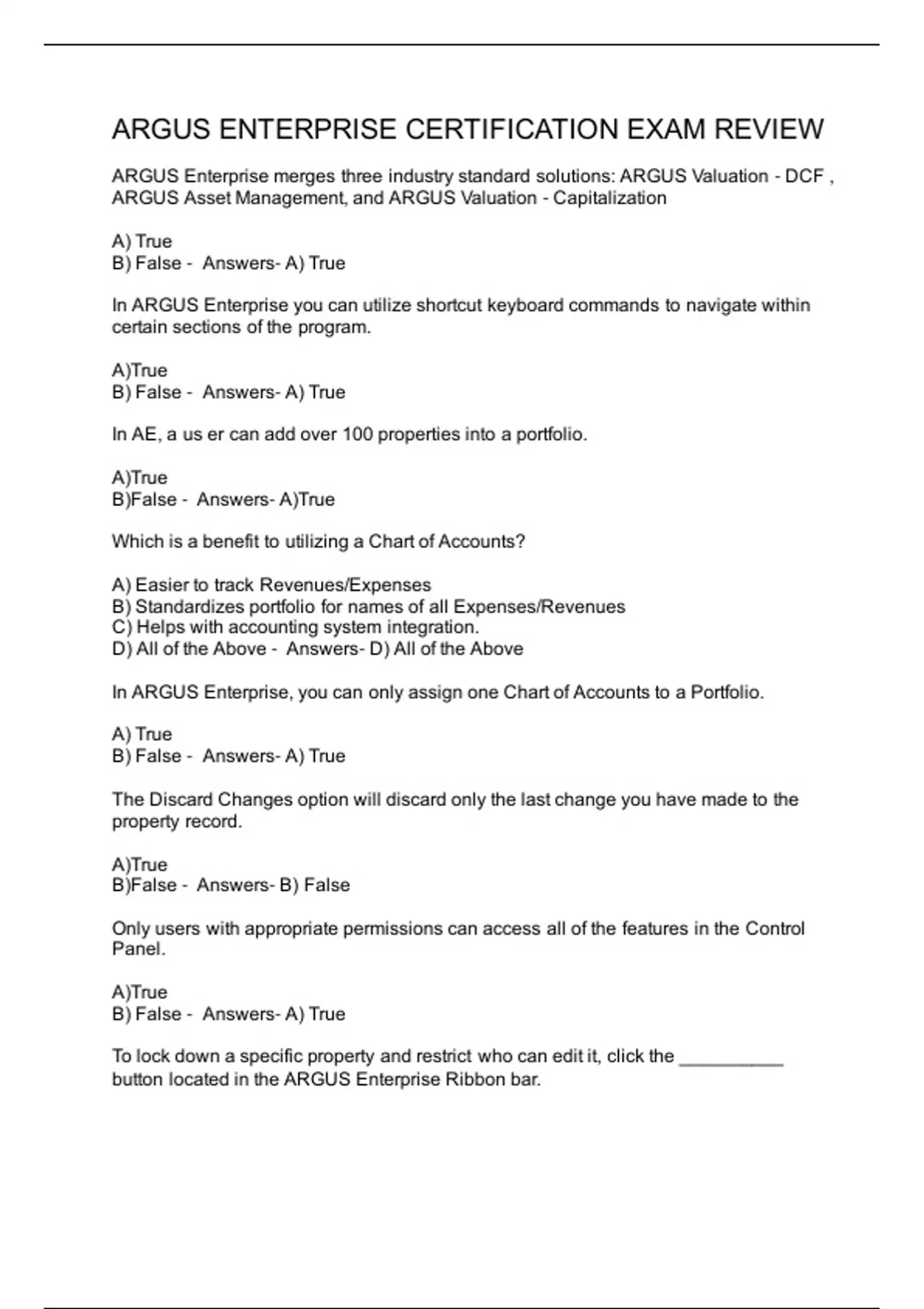 ARGUS ENTERPRISE CERTIFICATION EXAM REVIEW