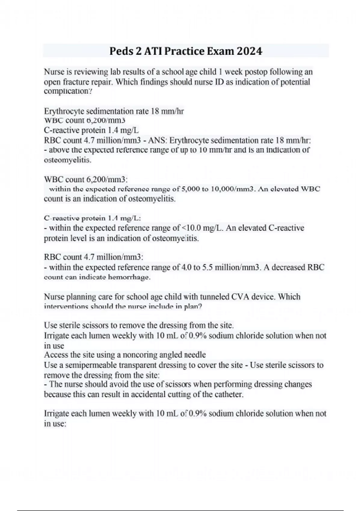 Peds 2 ATI Practice Exam 2024