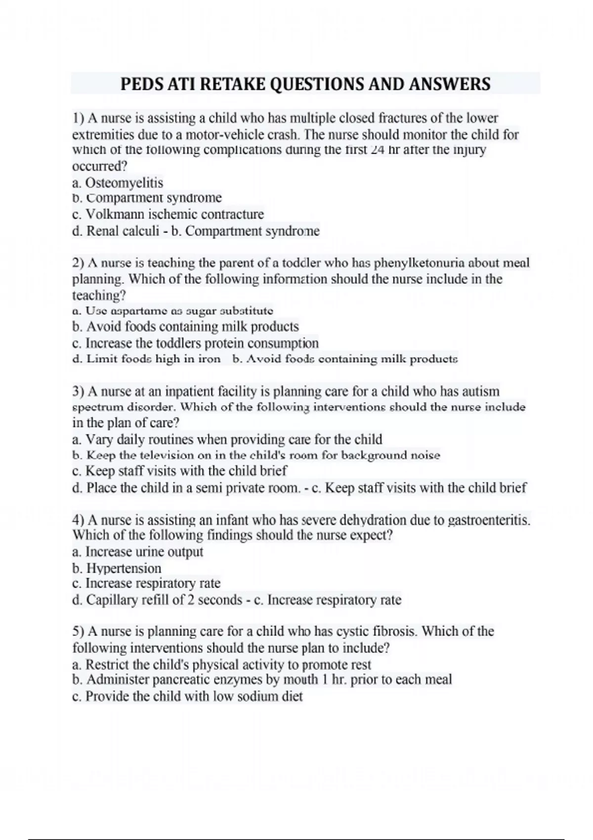 PEDS ATI RETAKE QUESTIONS AND ANSWERS
