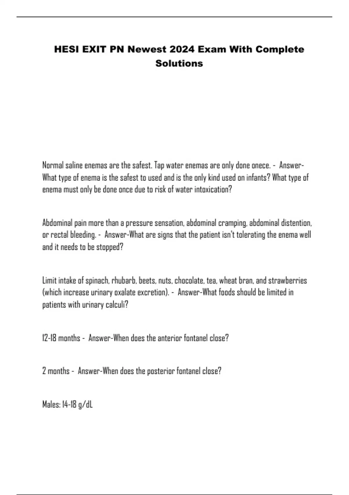 HESI EXIT PN Newest 2024 Exam With Complete Solutions