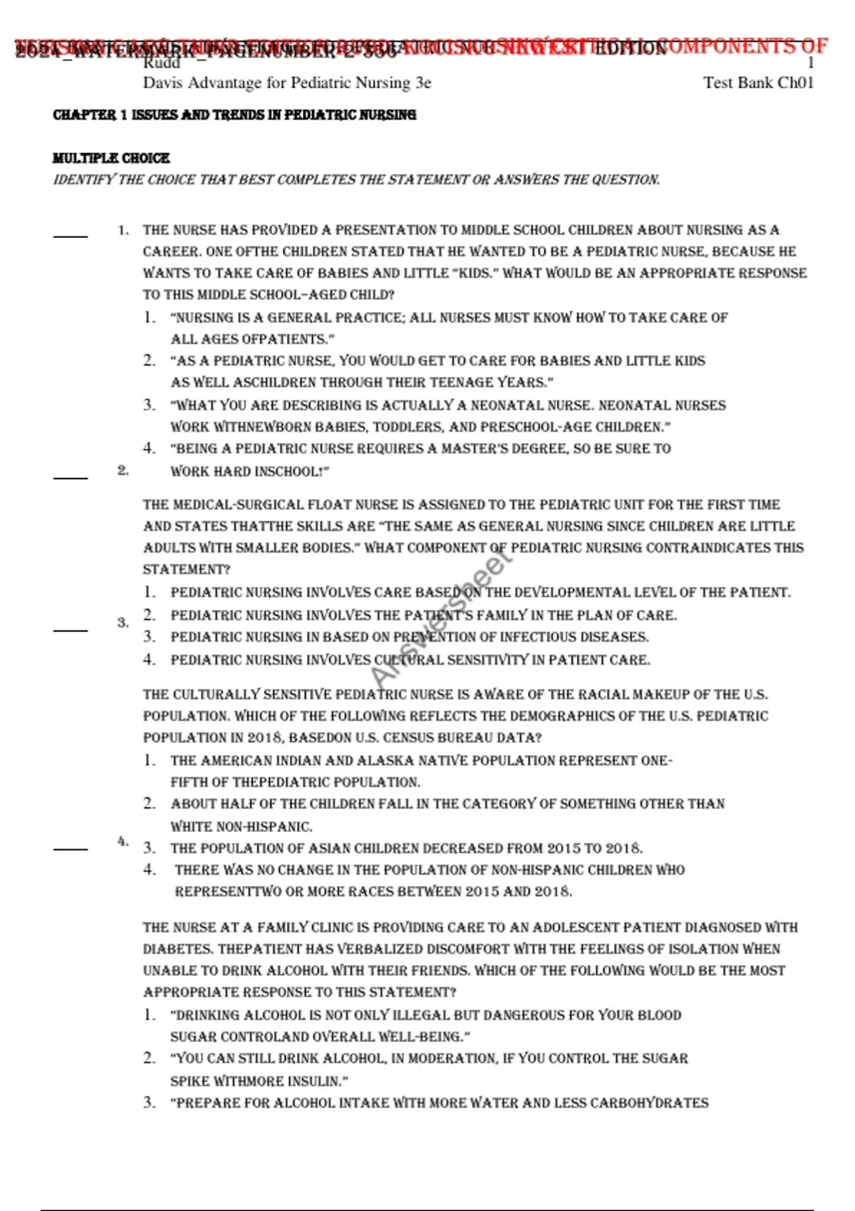 Test Bank Davis Advantage for Pediatric Nursing Critical Components of Nursing Care Third Edition Rudd, Kocisko Newest Edition 202425||ANSWERSHEET