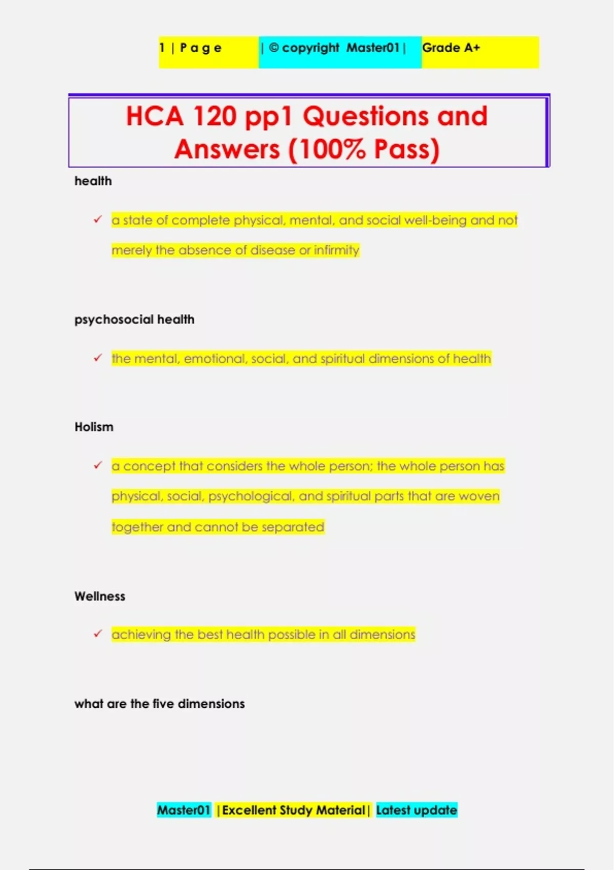 HCA 120 pp1 Questions and