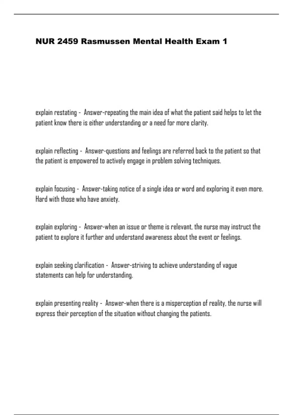 NUR 2459 Rasmussen Mental Health Exam 1