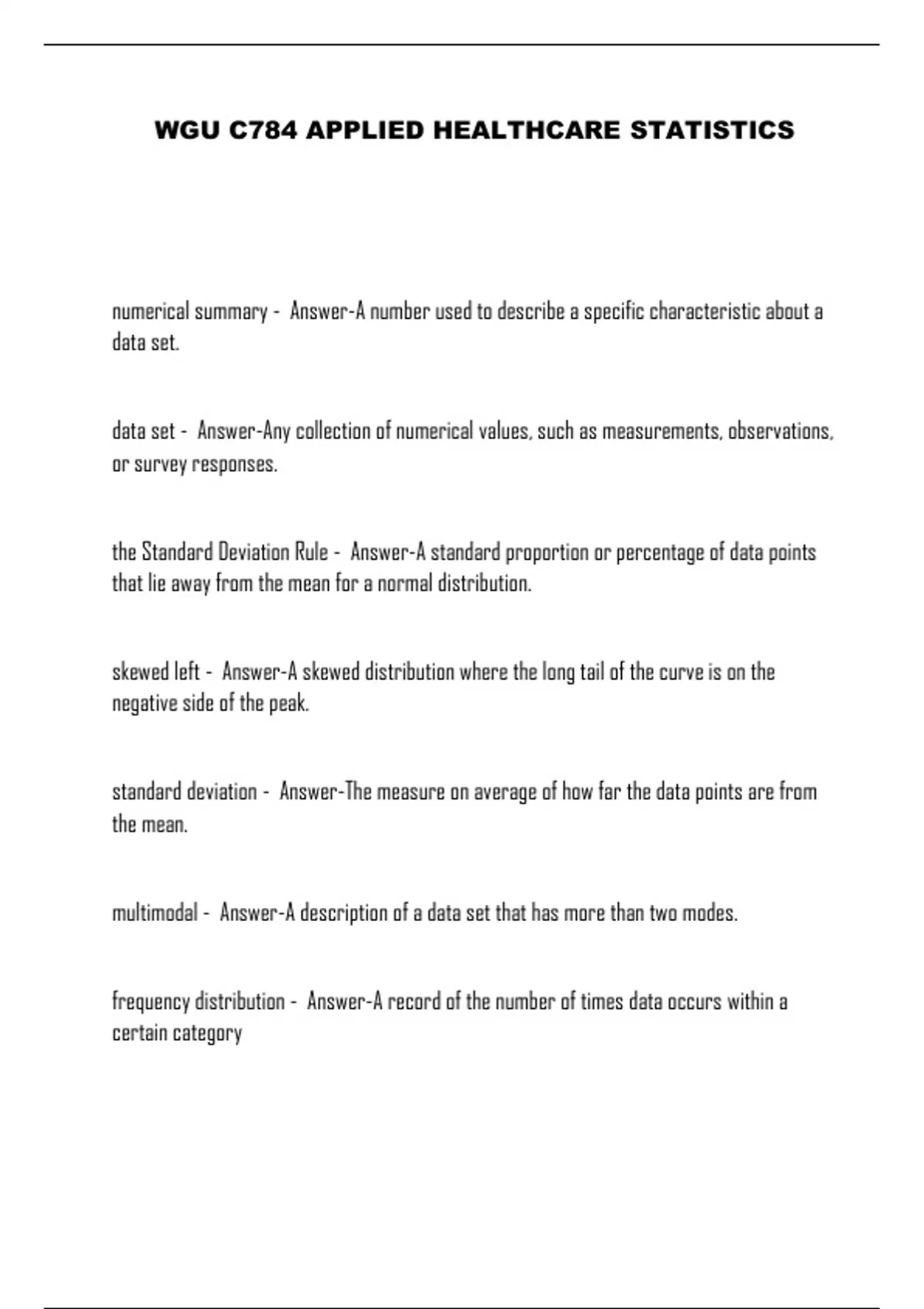 WGU C784 APPLIED HEALTHCARE STATISTICS