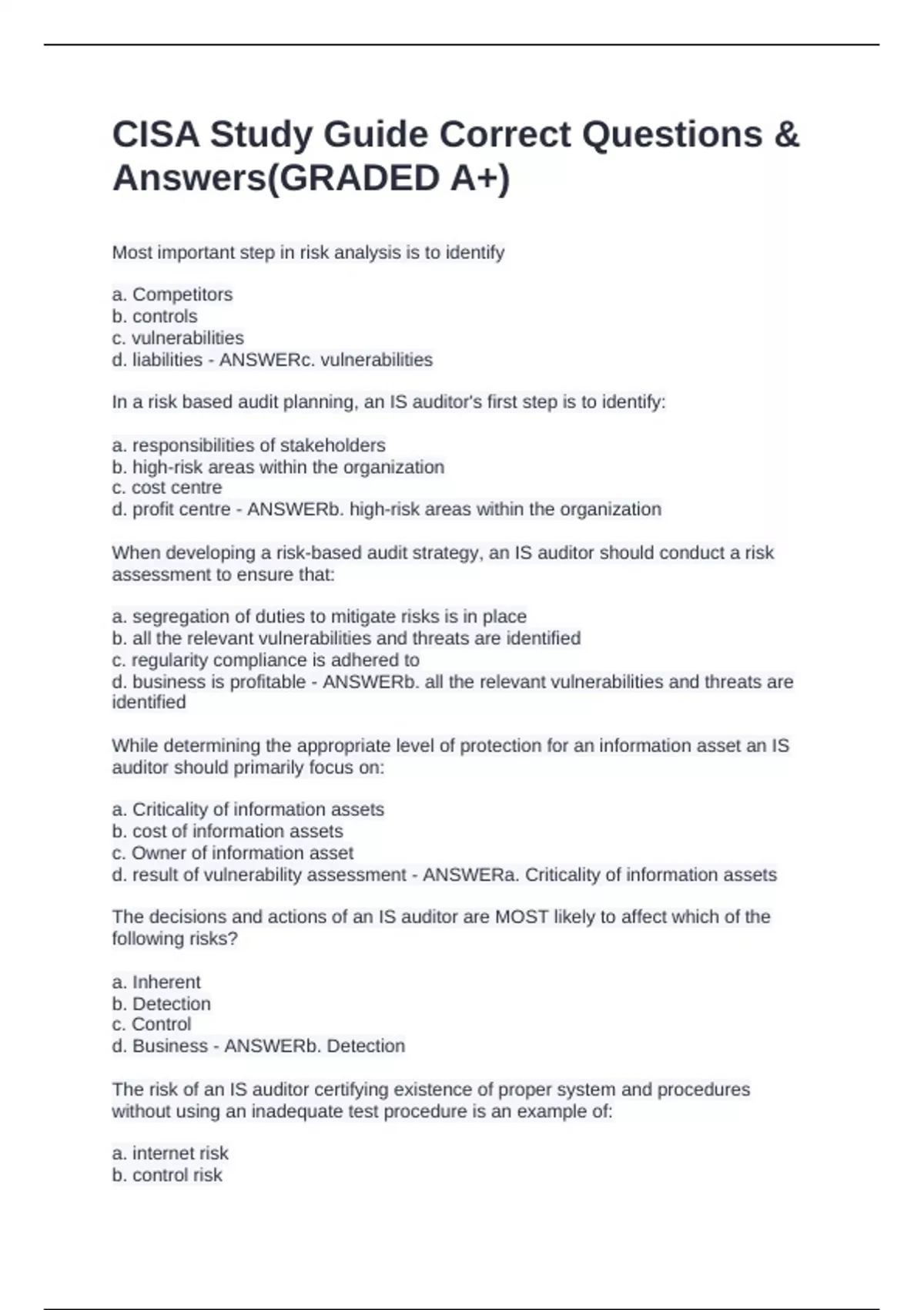 IS auditor identified certain threats and vulnerabilities in a business process. Next,
