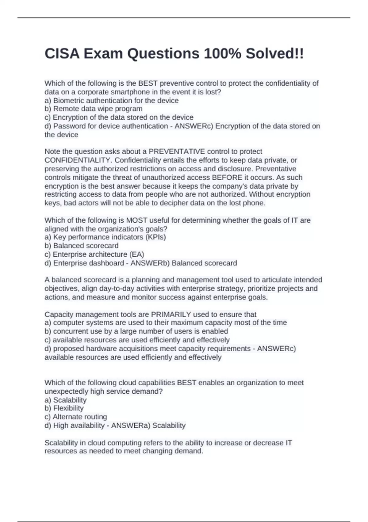d) High availability - ANSWERa) Scalability