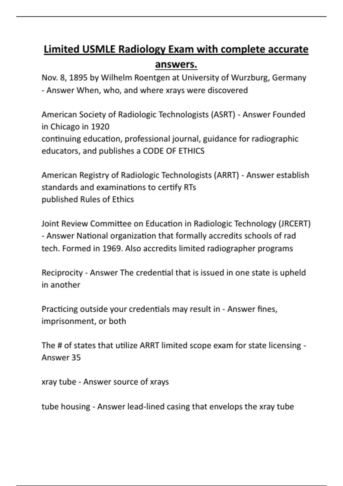 American Registry of Radiologic Technologists (ARRT) - Answer establish