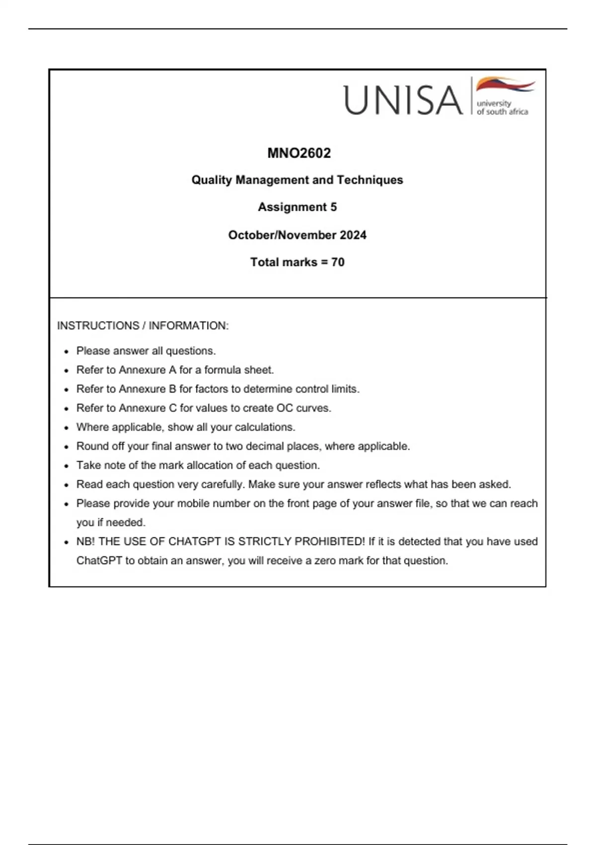 • Refer to Annexure A for a formula sheet.