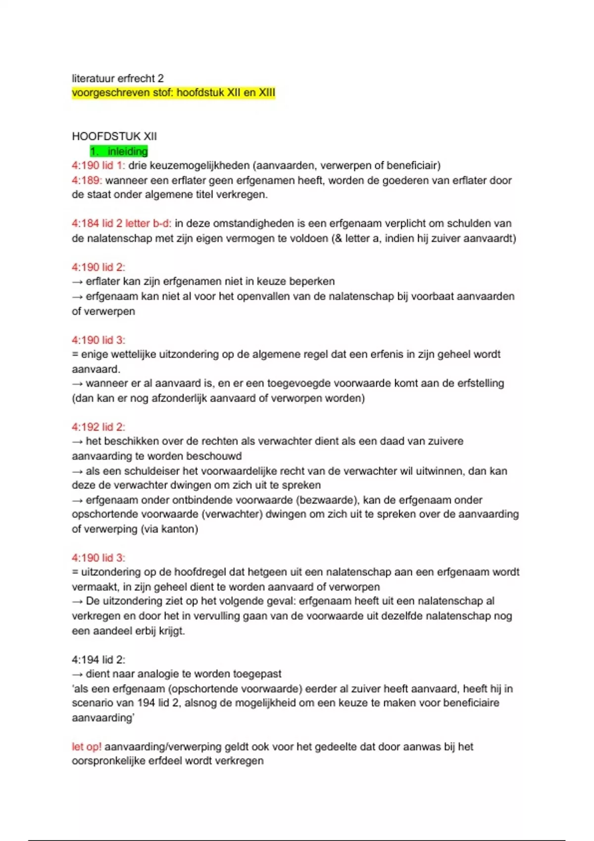 → erfgenaam kan niet al voor het openvallen van de nalatenschap bij voorbaat aanvaarden