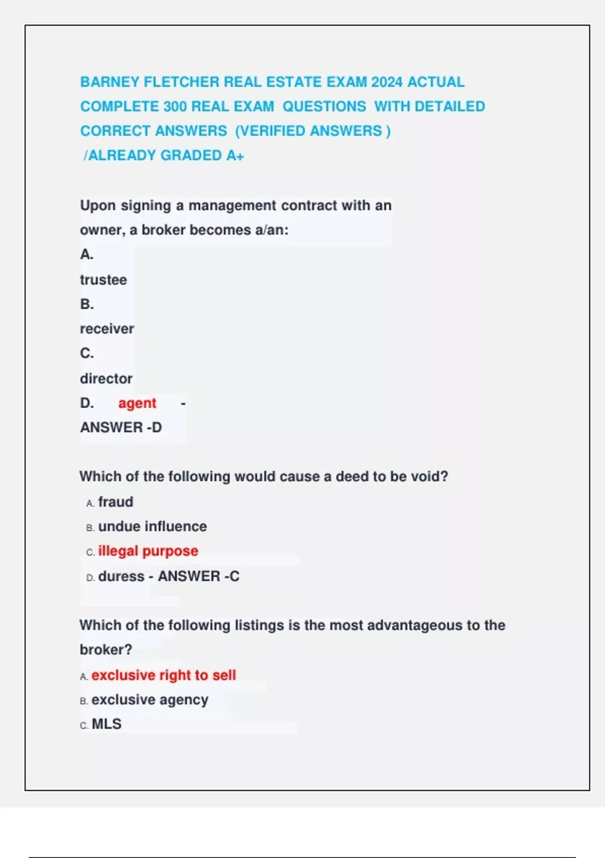 COMPLETE 300 REAL EXAM QUESTIONS WITH DETAILED