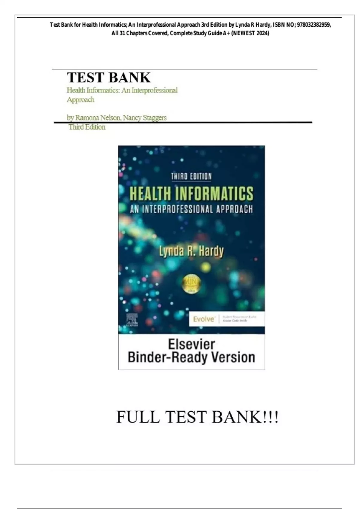 ,Test Bank for Health Informatics; An Interprofessional Approach 3rd Edition by Lynda R Hardy, ISBN NO; 978032382959,