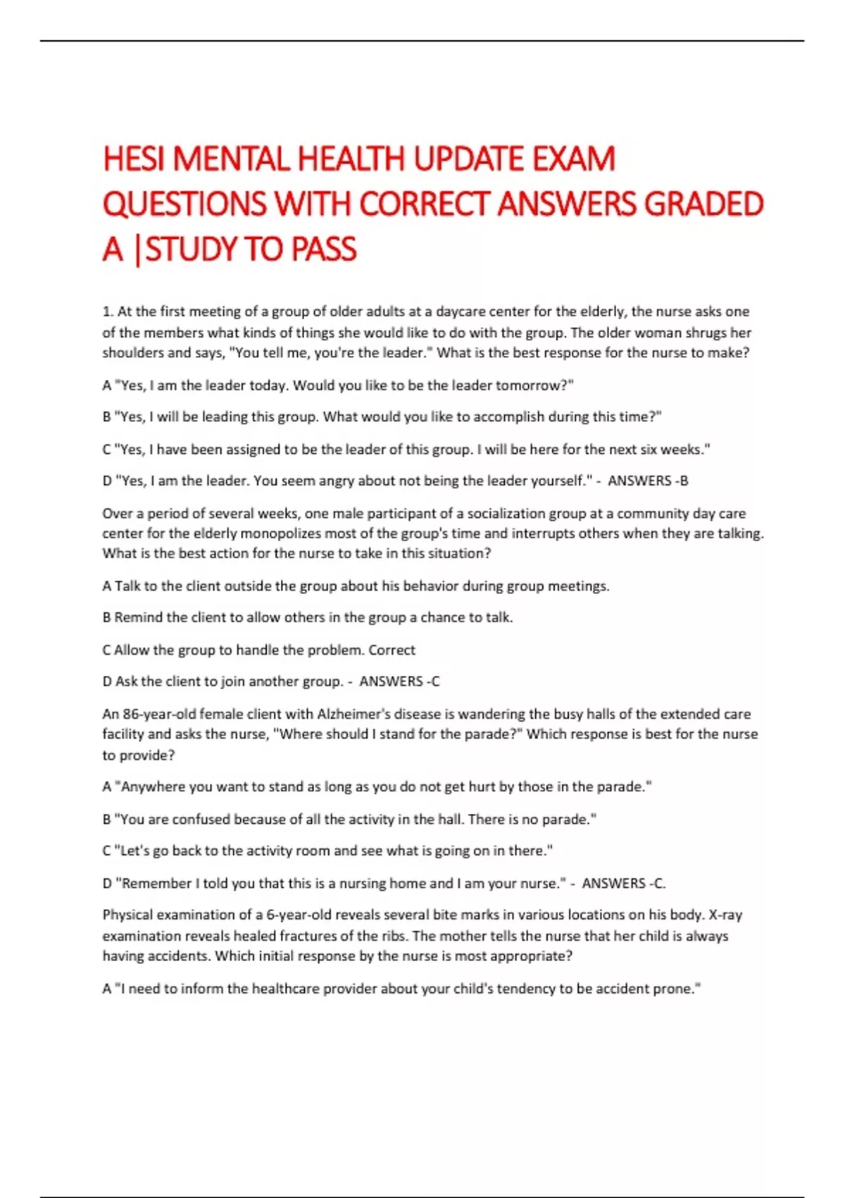 QUESTIONS WITH CORRECT ANSWERS GRADED