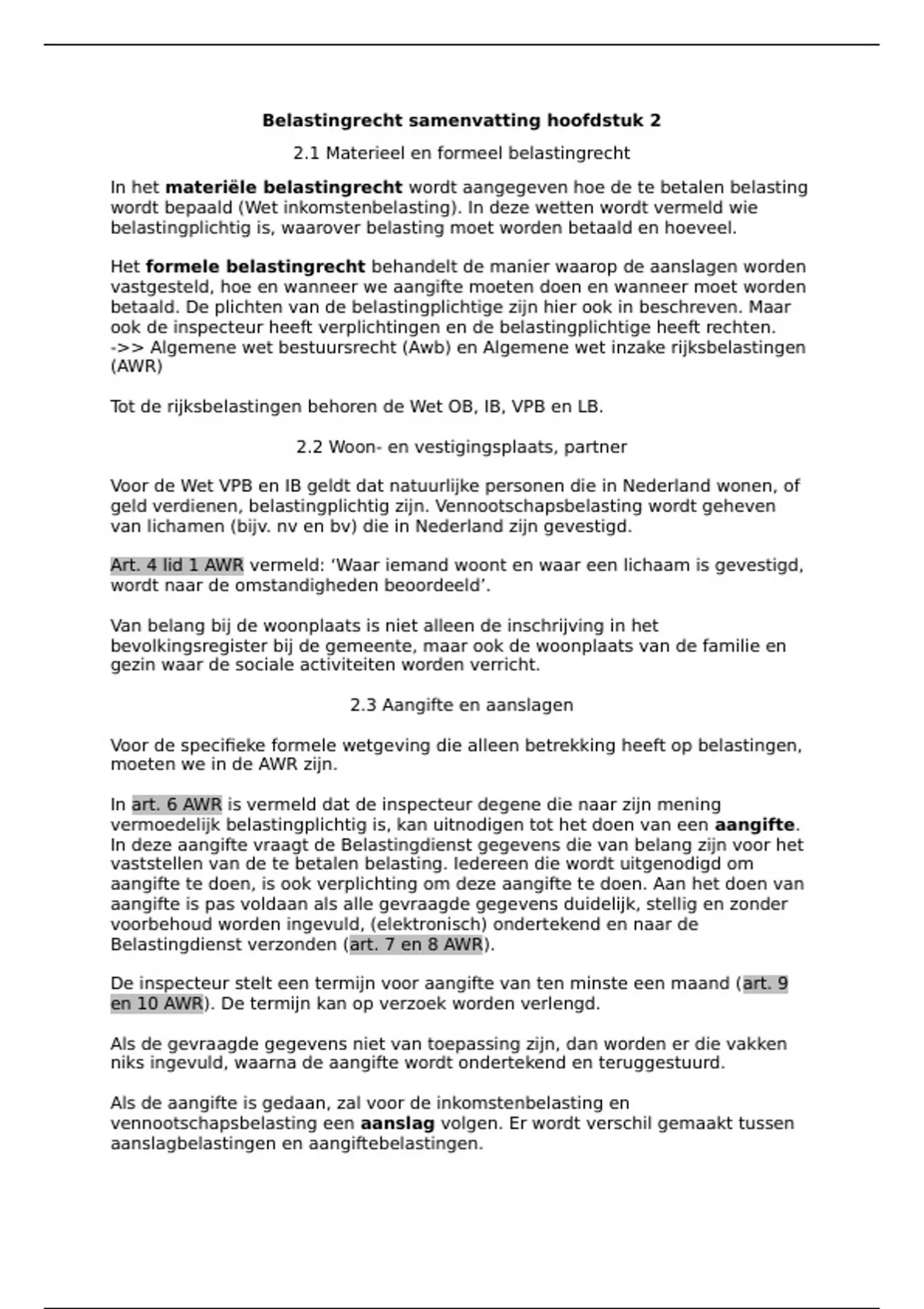 Samenvatting hoofdstuk 2 van het boek genaamd Praktisch Fiscaalrecht () voor het vak Belastingrecht (gegeven in jaar 1 Windesheim). Inclusief de relevante wetsartikelen.