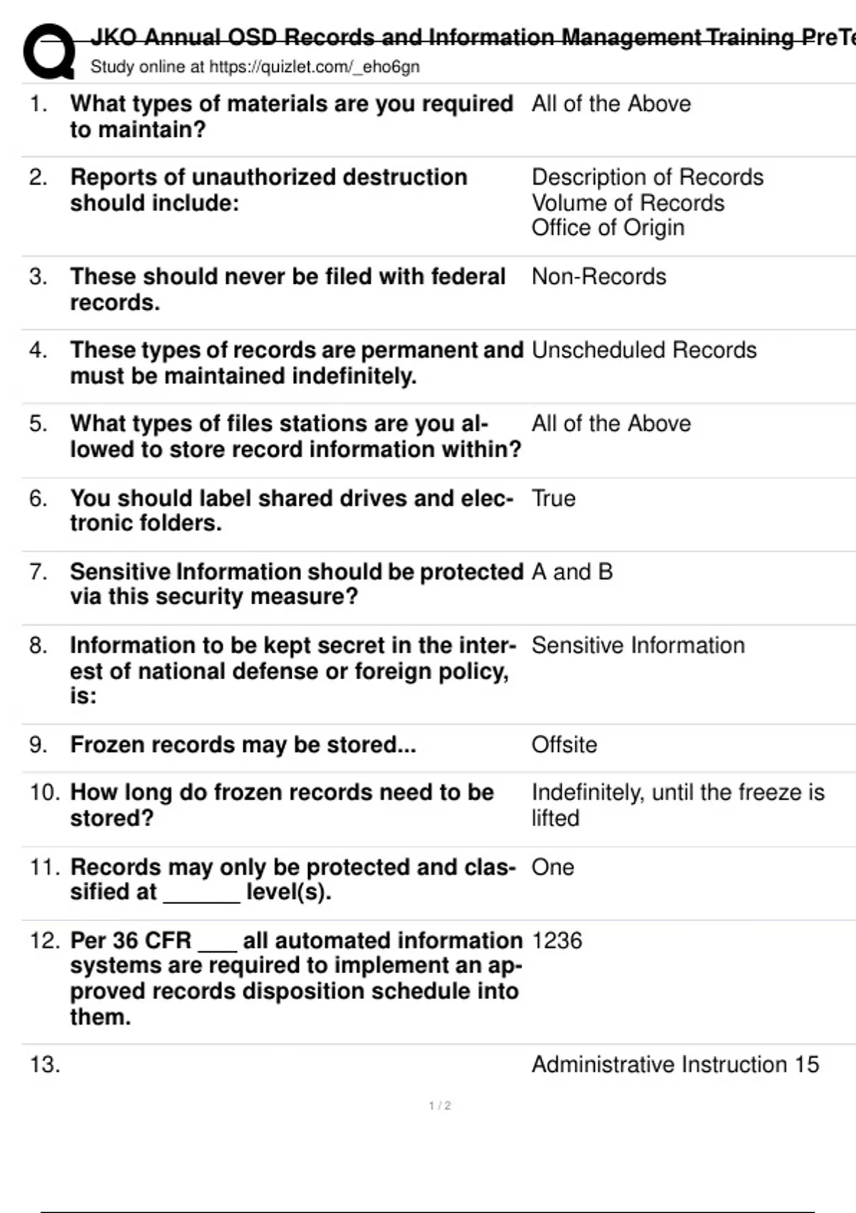 JKO Annual OSD Records and Information Management Training PreTest.