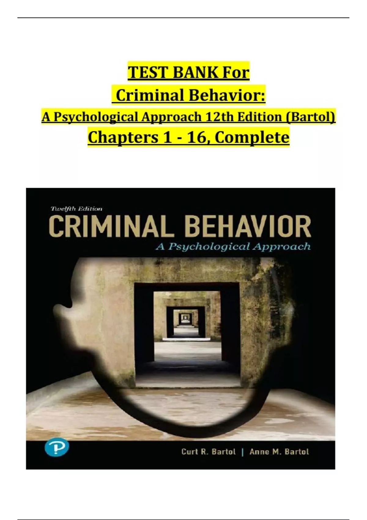 Test Bank For Criminal Behavior A Psychological Approach 12th Edition All Chapters Covered ,Latest Edition ISBN:9780135618721