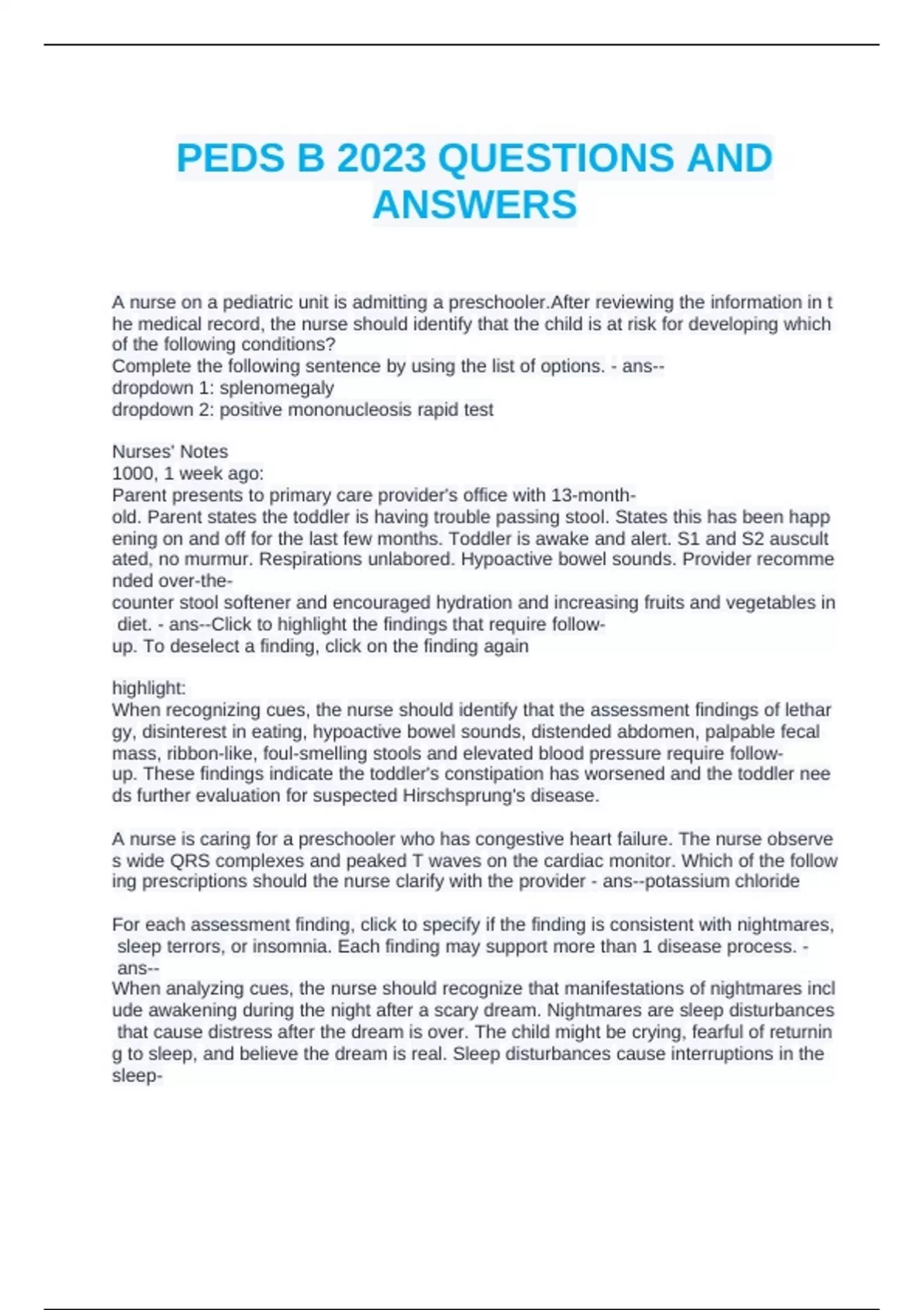 PEDS B 2023 QUESTIONS AND ANSWERS
