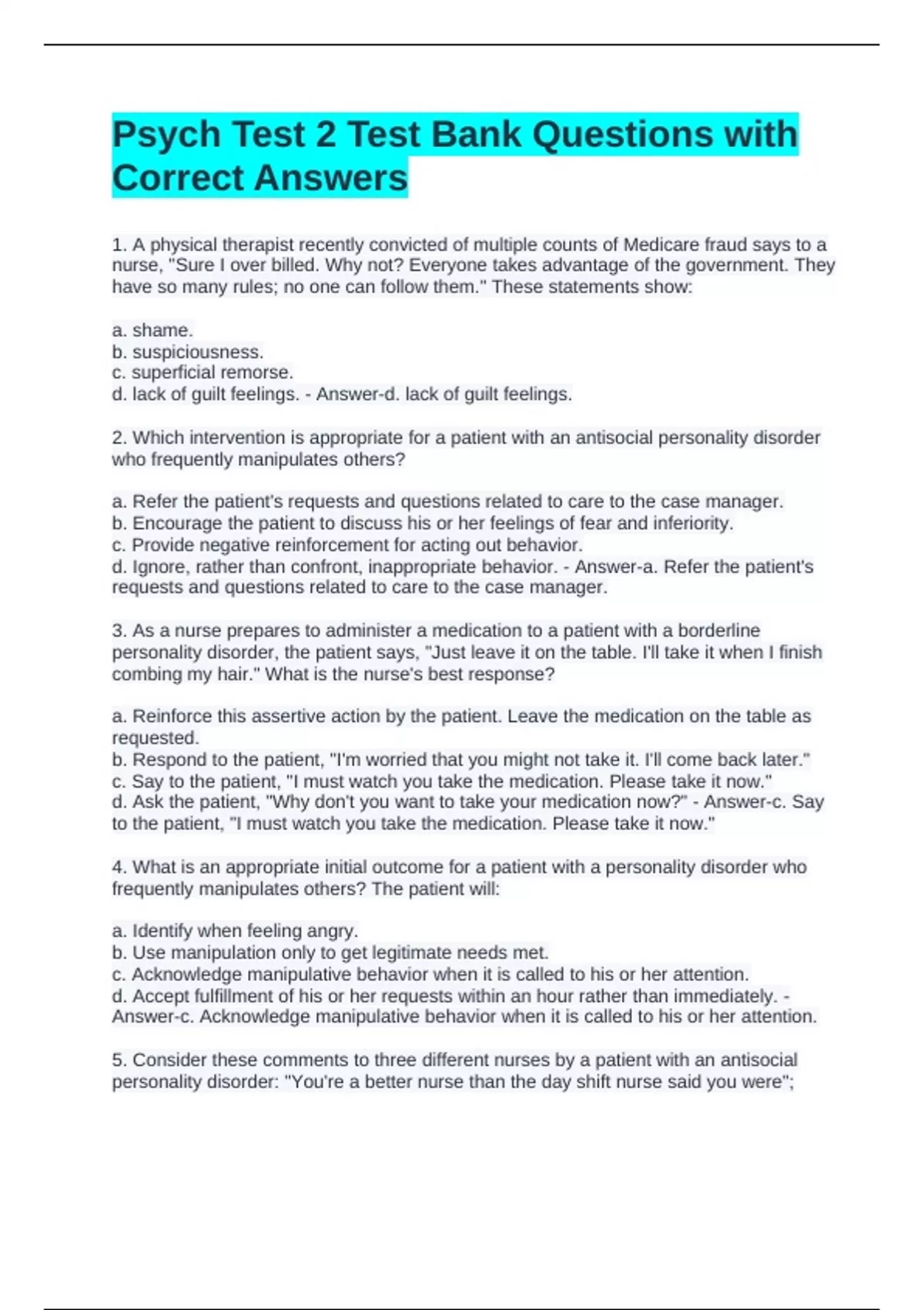 ,10. When a patient with a personality disorder uses manipulation to get his or her needs