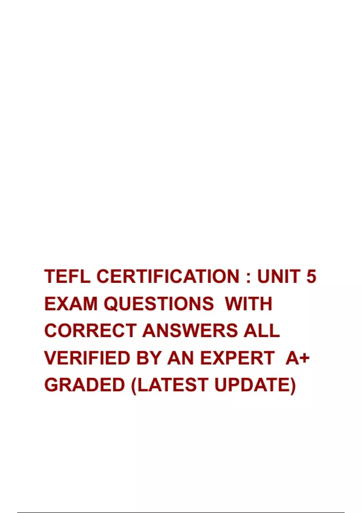 TEFL CERTIFICATION : UNIT 5 EXAM QUESTIONS WITH CORRECT ANSWERS ALL VERIFIED BY AN EXPERT A+ GRADED (LATEST UPDATE)