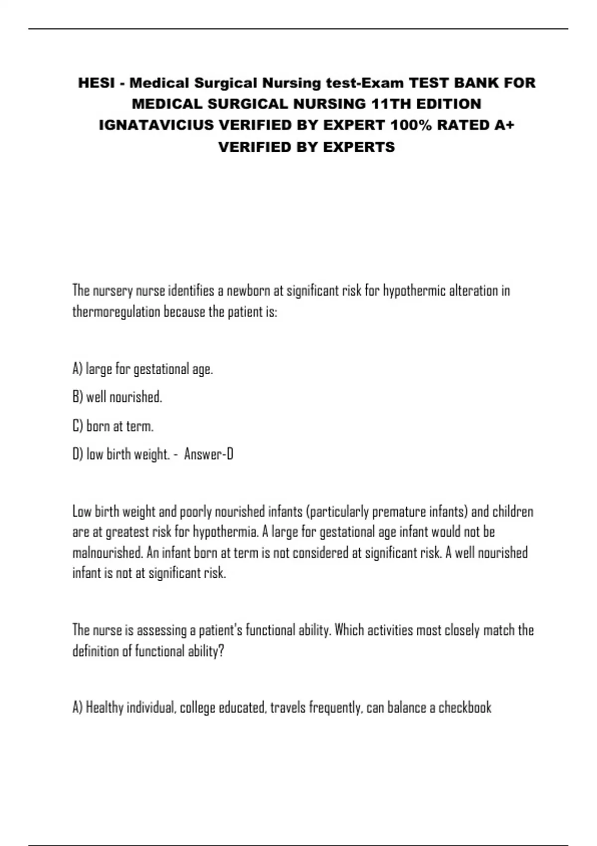 HESI - Medical Surgical Nursing test-Exam TEST BANK FOR MEDICAL SURGICAL NURSING 11TH EDITION IGNATAVICIUS VERIFIED BY EXPERT 100% RATED A+ VERIFIED BY EXPERTS