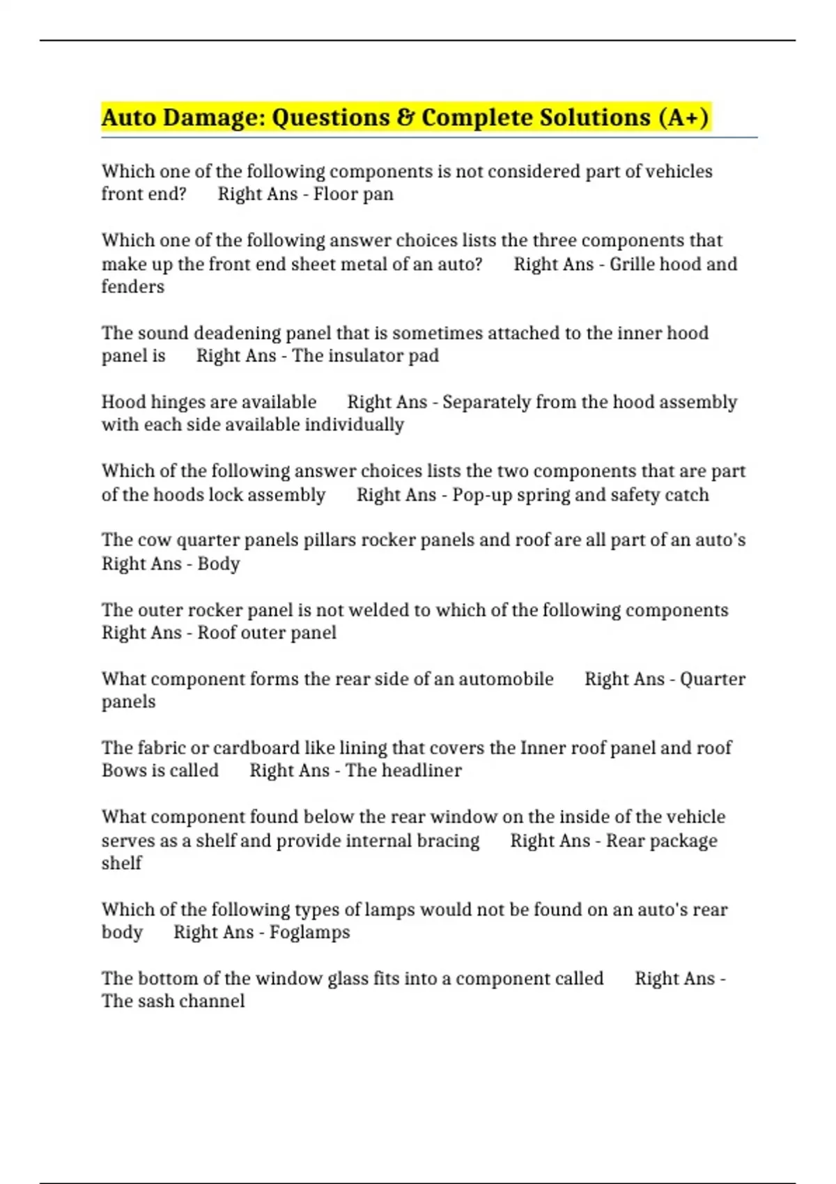 make up the front end sheet metal of an auto? Right Ans - Grille hood and