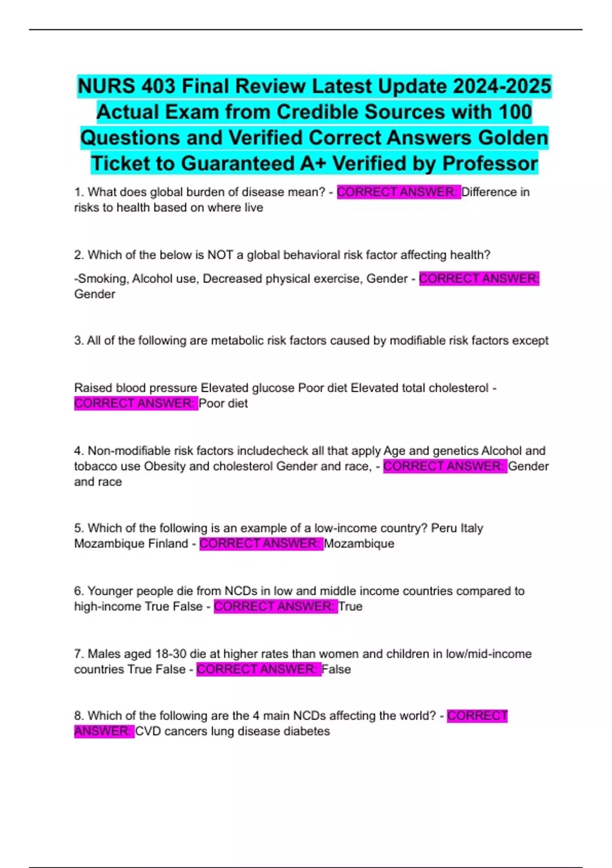 1. What does global burden of disease mean? - CORRECT ANSWER: Difference in