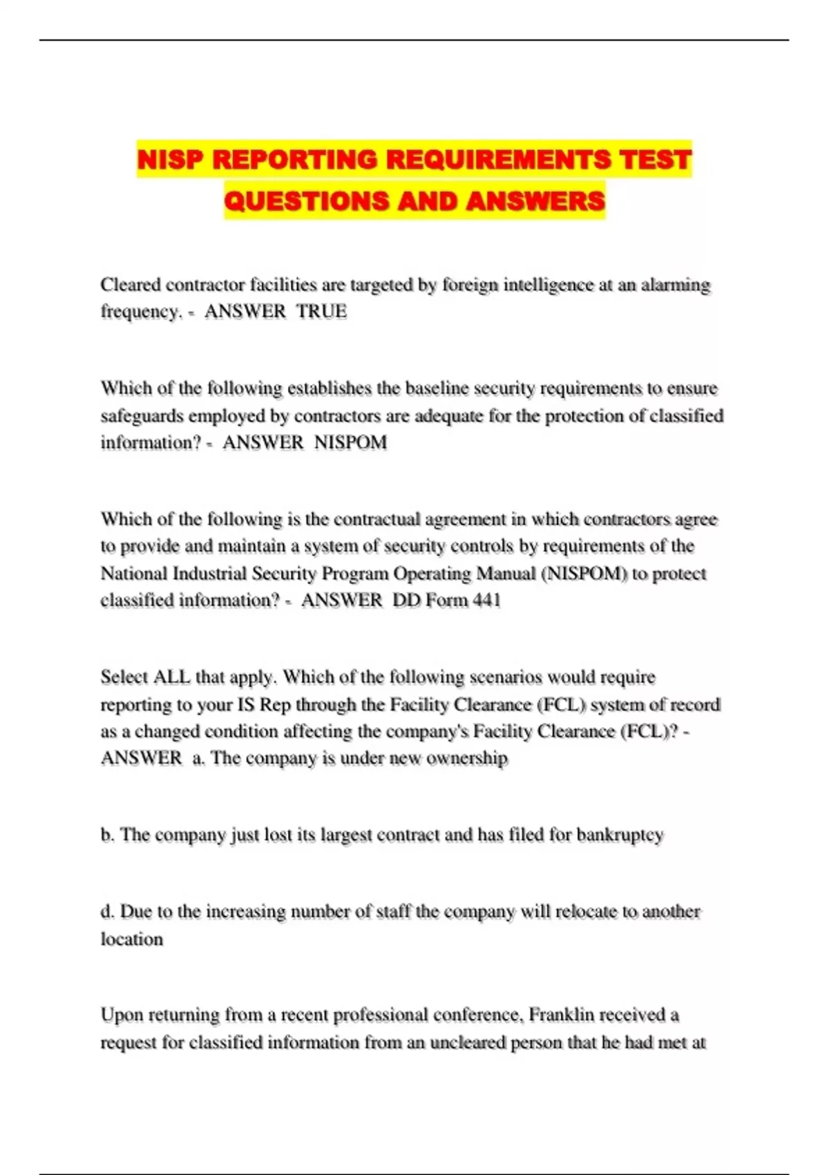 reporting to your IS Rep through the Facility Clearance (FCL) system of record
