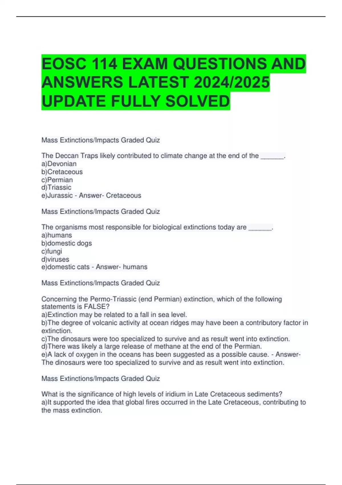 e)A lack of oxygen in the oceans has been suggested as a possible cause. - Answer-